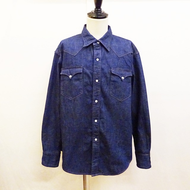 <WESTERN SHIRTS> 30sのUSミリタリーデニム⽣地をイメージソースに制作された8ozデニムを使⽤したデニムウエスタンシャツのご紹介です。 程良い肉厚と着心地を損なわないソフトな肌触りが特徴のデニム生地に、敢えてデザインはミリタリーものではなく、シンプルなアイボリーパールボタン仕様のウエスタンシャツに仕上がっています。 ややリラックス感を感じれる身幅に、従来のウエスタンシャツより短めに設定された着丈で非常にバランスの良いシルエットで、裾はイン、アウト共に合わせやすく様々なスタイリングで使える1枚です。 <GYPSY & SONS> VINTAGE MILITARYやWORKアイテムをイメージソースに、当時の技術や時代をオマージュしつつ、現代の最新技術と新しいオリジナルの発想で再構築した、新しい大人のオーセンティックウエアブランド 。 COLOR/INDIGO/ONE WASH サイズ/2,3 2:肩幅50 身幅60 着丈75 袖丈59 /cm 3:肩幅52 身幅63 着丈78 袖丈61/cm *この商品にはインディゴ染料を使用しております。 詳しいお手入れ方法に関しては、付属のタグをご確認ください。 *商品はメーカー出荷時よりワンウオッシュ掛かっています。 MADE IN JAPAN *サイズ、状態等ご心配な方はお気軽にお問合せ下さいませ。 *170cm 75kg 着用サイズ2 ジャストなサイズ感でストレスなく着用できるサイズです。(普段ドメスティクブランド Lサイズメイン) *写真におきまして、撮影環境等で微妙な色の誤差、ご覧になられるPC環境によって色目の差異がございます事をご了承頂きますよう宜しくお願い致します。