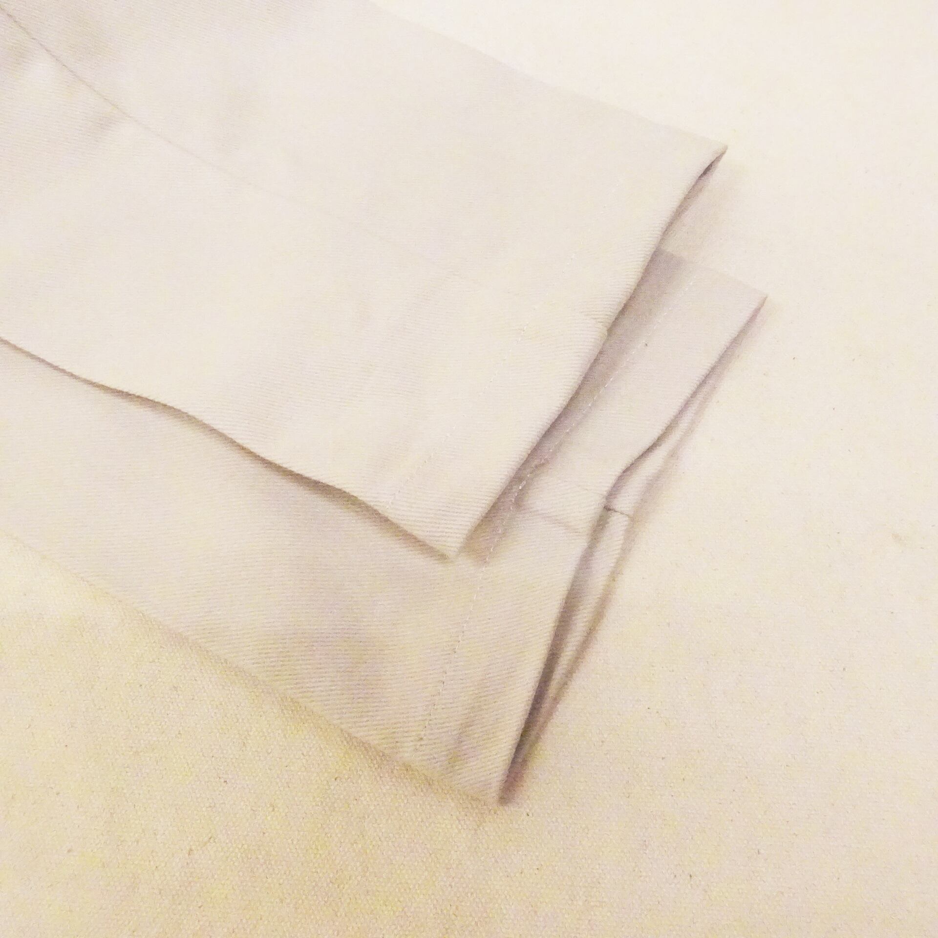 そして、このアイテムを更に引き立たせるのが英国随一の織物工場であるブリスベン・モス社のKEATS(キーツ)と呼ばれるヘビーコットンツイルになります。少し硬さを感じる生地ですが、デニムなどと同様に着用をかさねてゆく事で、身体の形に沿って馴染んでいく過程を楽しんでいただけます。生産の方も変わらずイギリスの某ワークウエアブランドにて製作されており信頼のおける1本です。