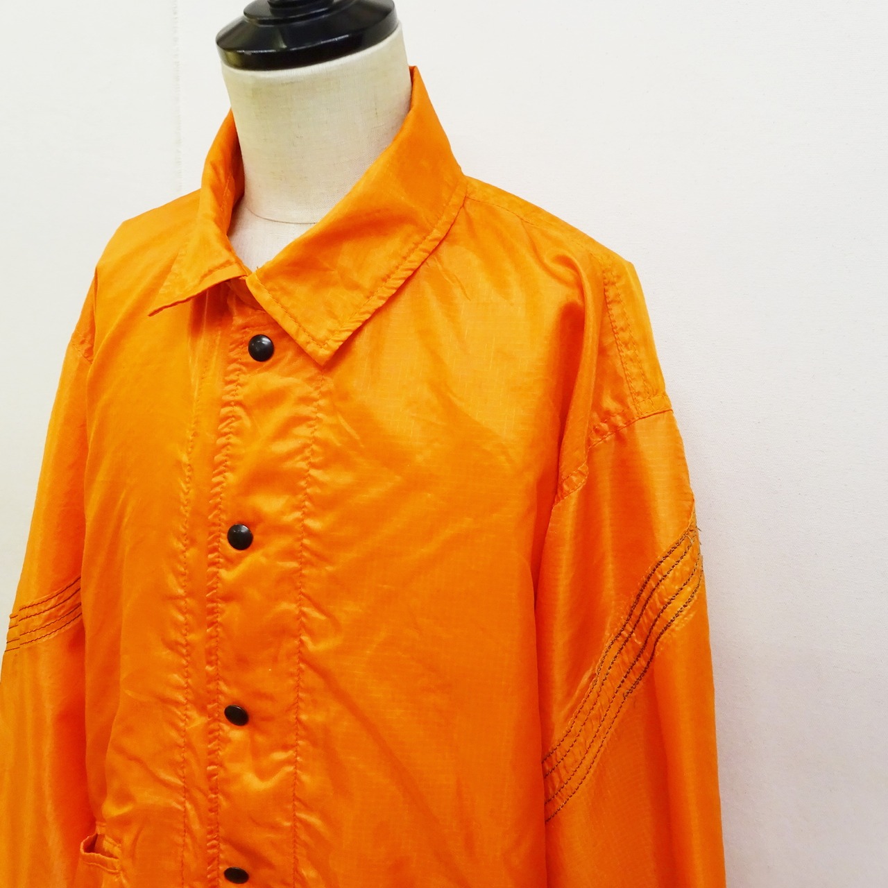 まず特筆すべき点は、使用する素材が1970年代頃の貴重なUS AIR FORCEのパラシュート使用しており、戦闘機が着陸した際に開くパラシュートでとても軽い素材になります。そちらを分解、再構築し生産されたコーチジャケットは着用感をあまり感じないほどにエアリーな着心地で、他では味わえないジャケットになります。