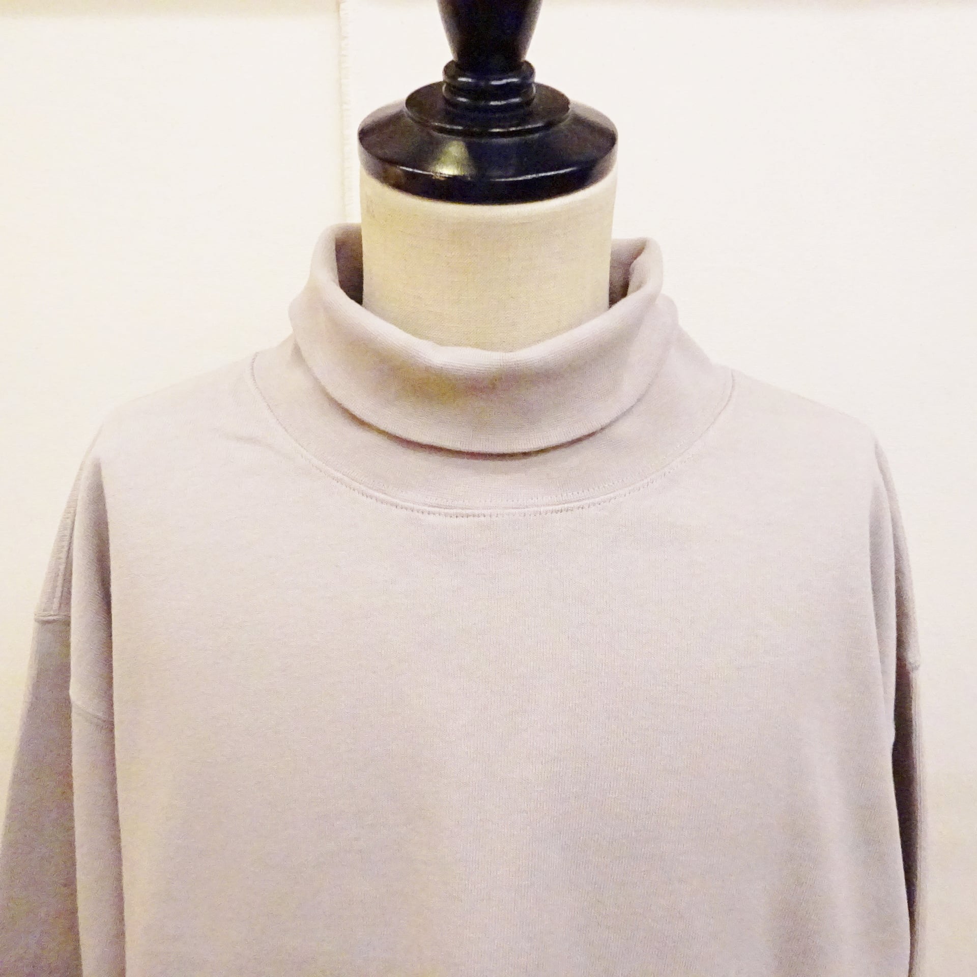 Tシャツ以上スウェット未満な位置づけの生地感に、タートルネックのクラシックさとデイリーウェアのストレスフリーさが上手く融合された1枚です。