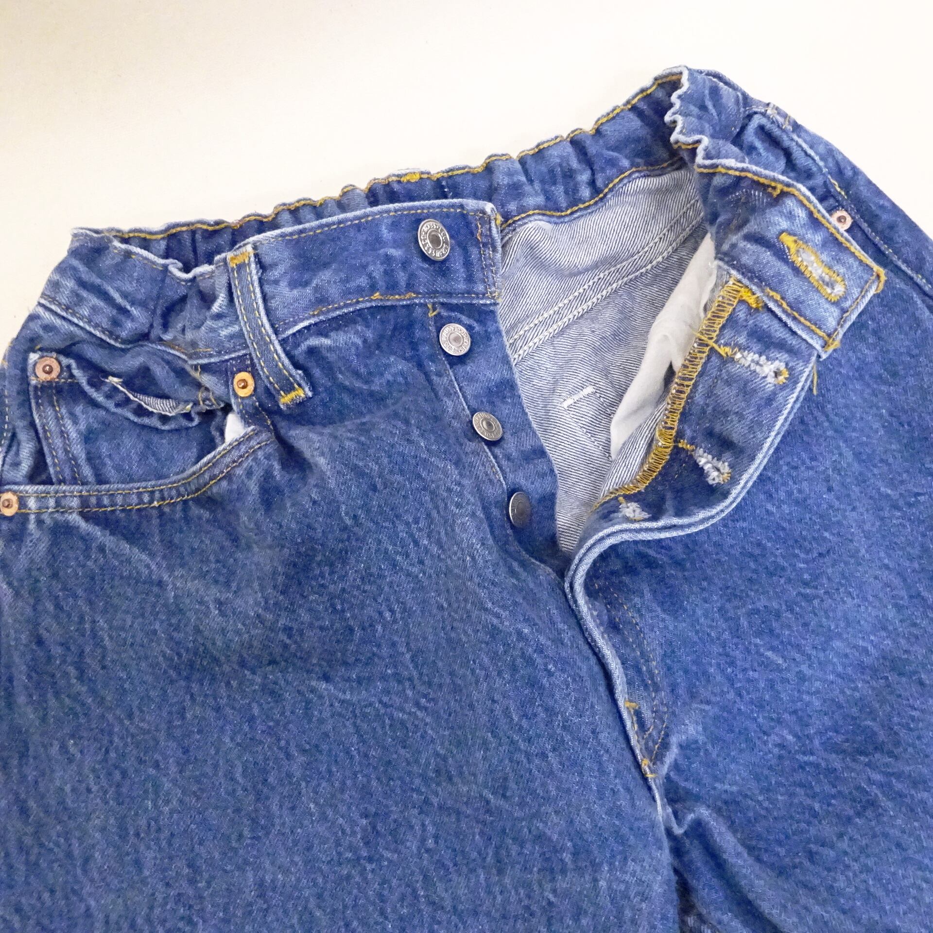 古着個体のアイデンティティを保ちながら、さりげない一手間をかけたリメイクが魅力的なブランドgo-getterより、USED Levi'sデニムパンツをリメイクしたイージーパンツのご紹介です。