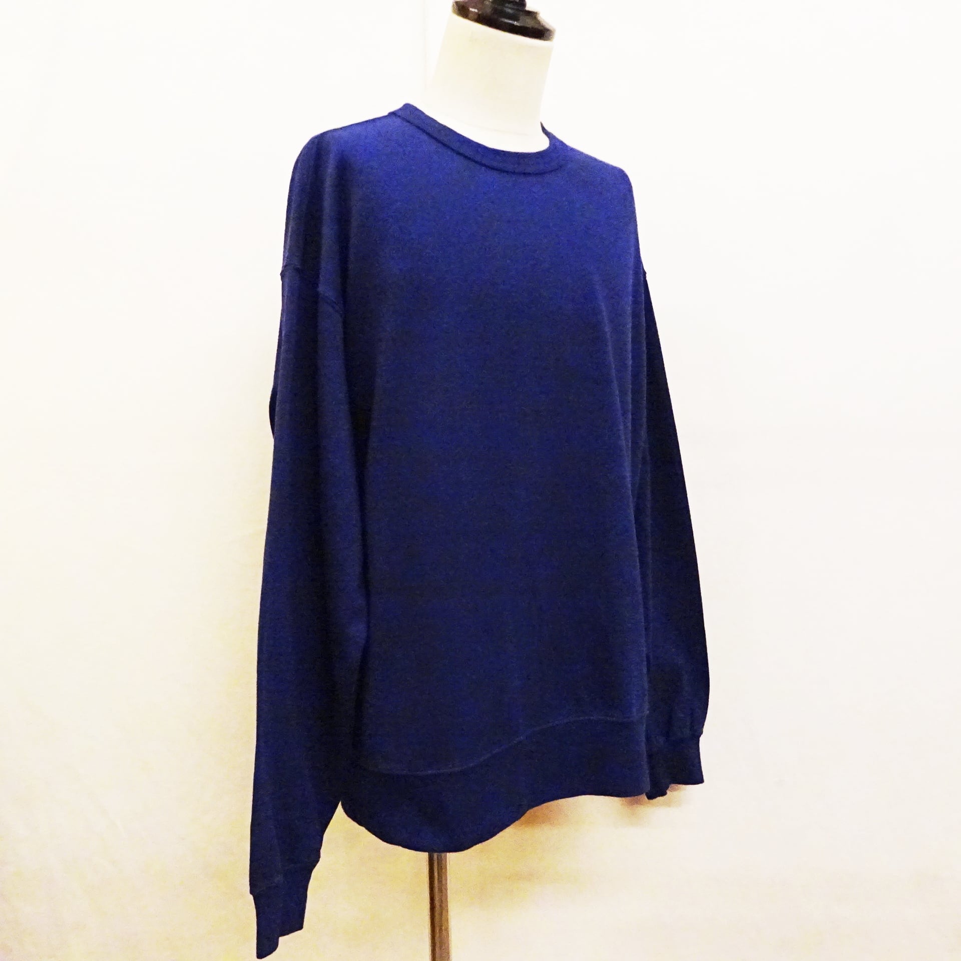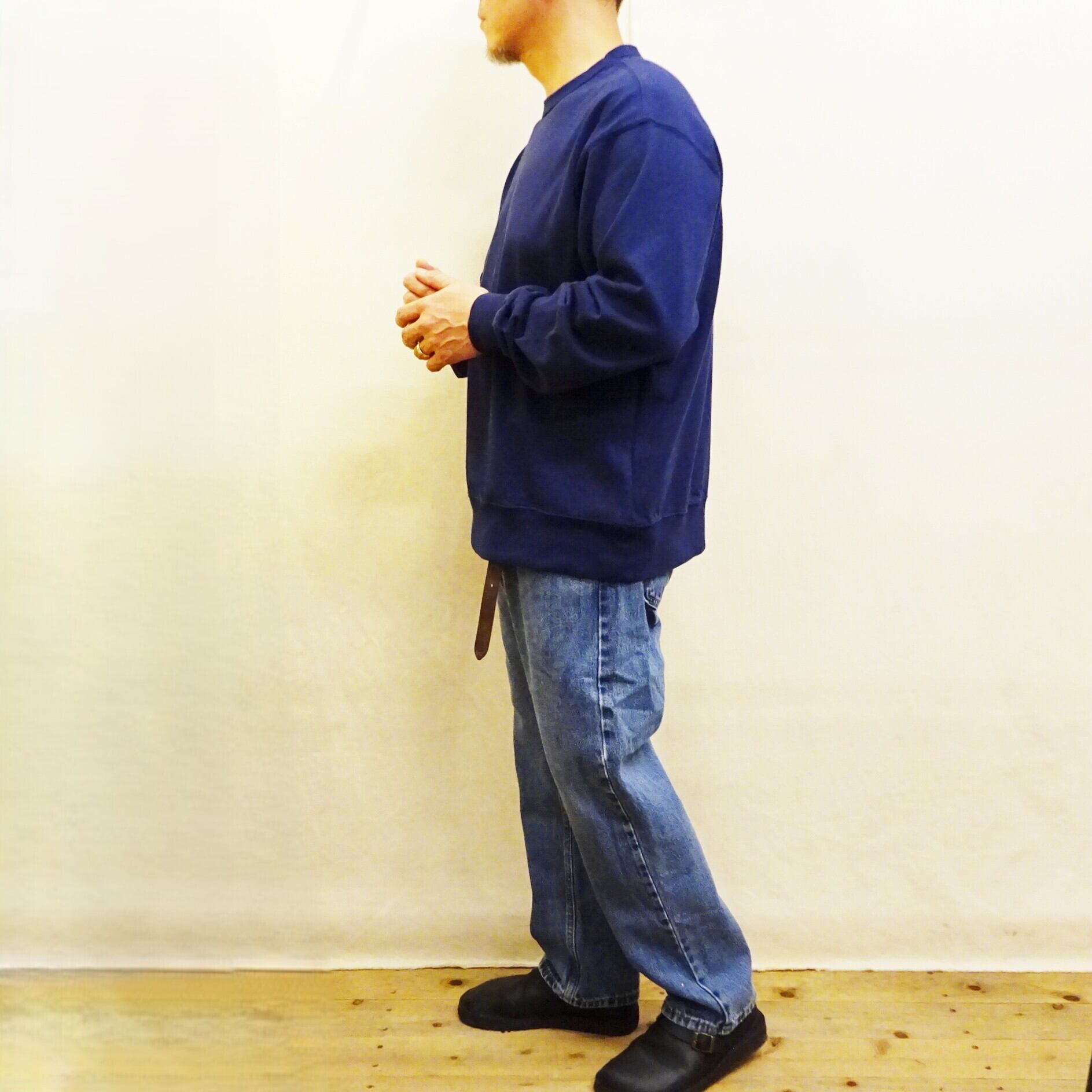 デザインはシンプルな無地のクルーネックですが、生地との相性を考量したスウェットライクなデザインで、着た際に生地の強さにストレスを感じないように、少し肩を落とし短めの着丈で非常にバランスの取れたシルエットの1枚です。