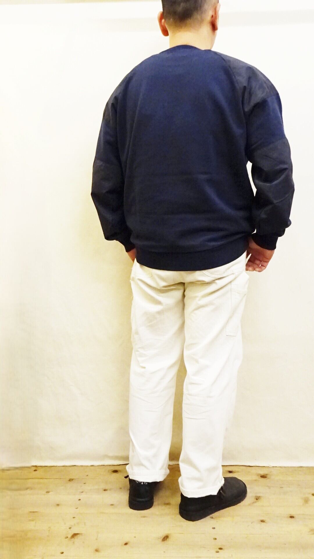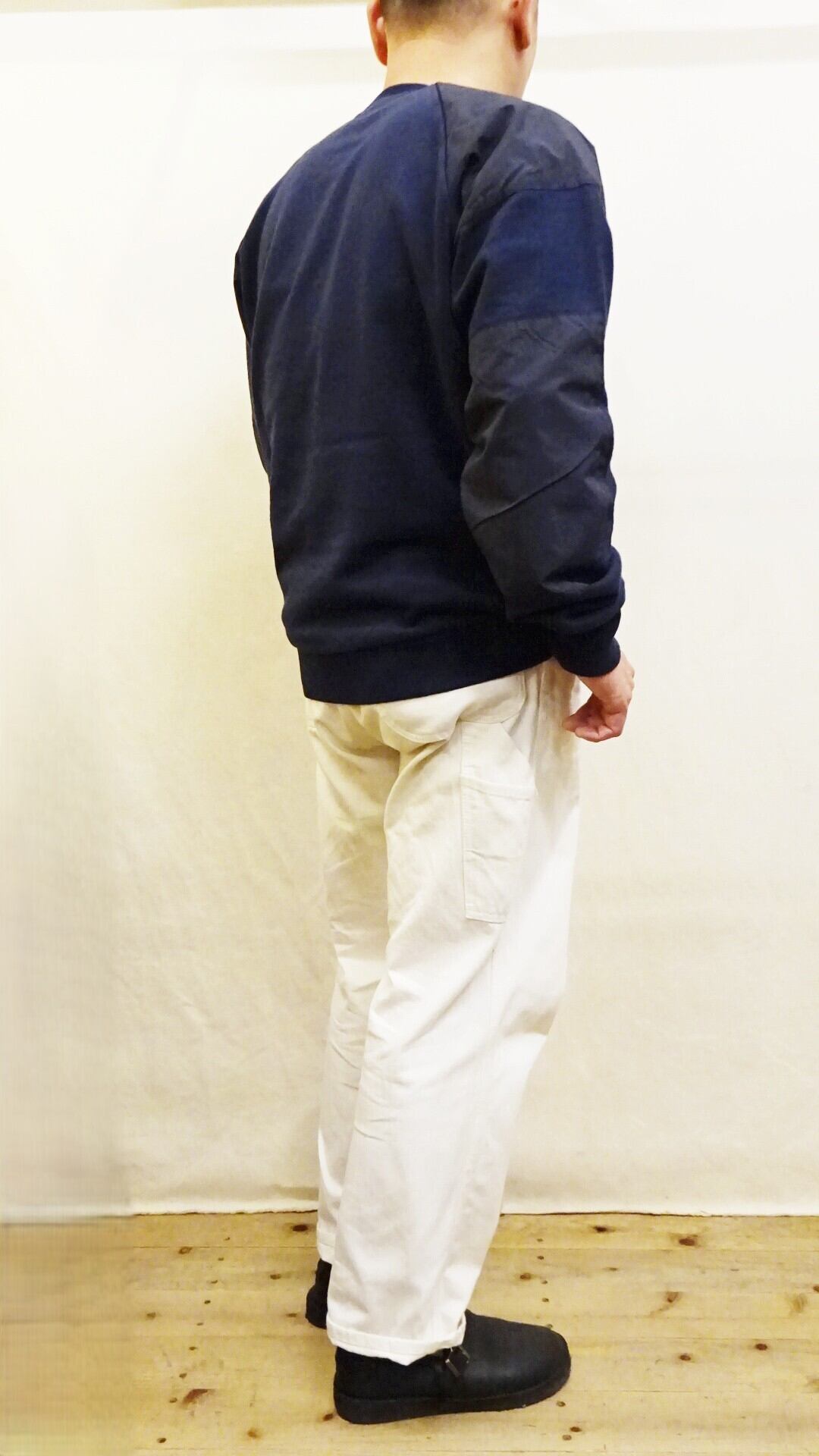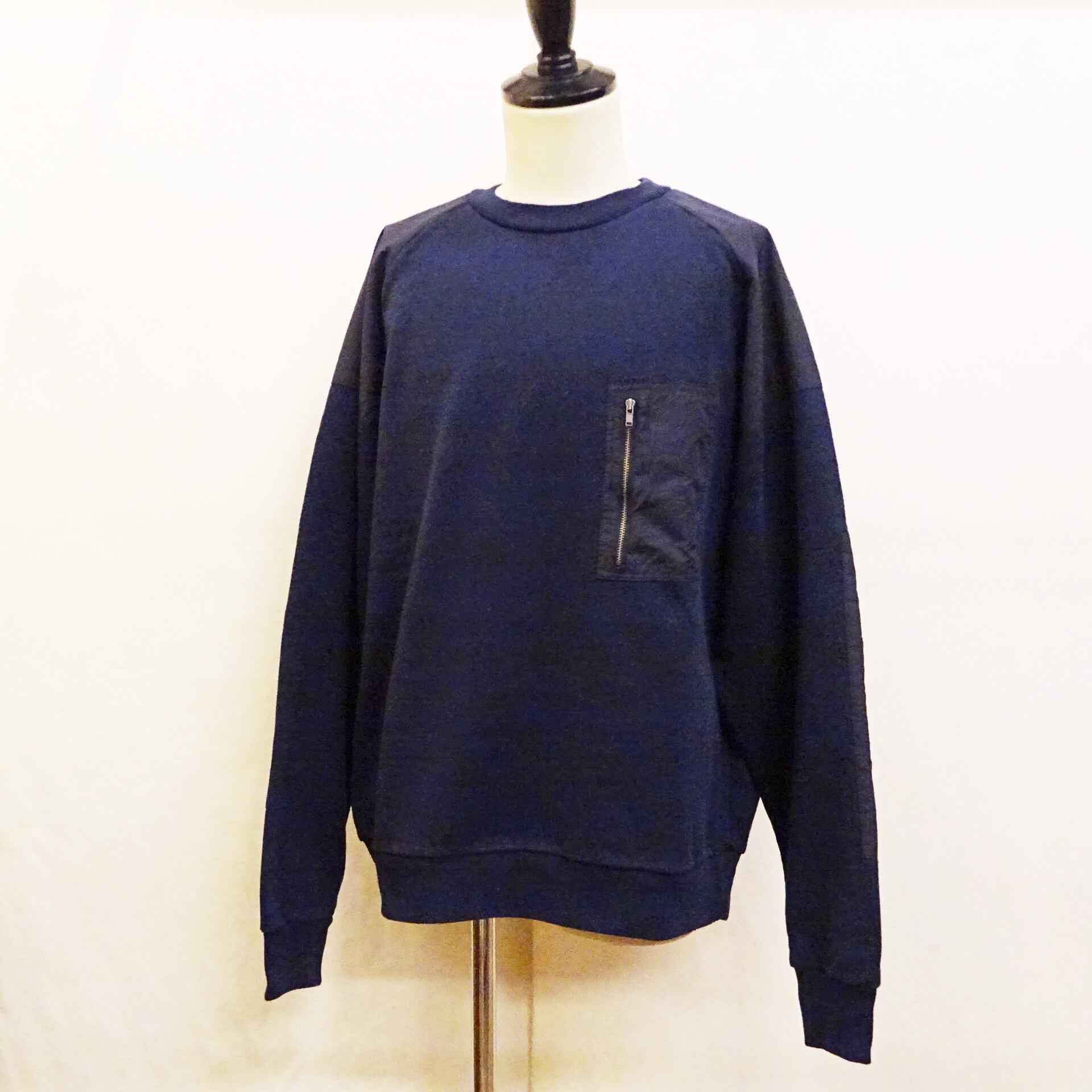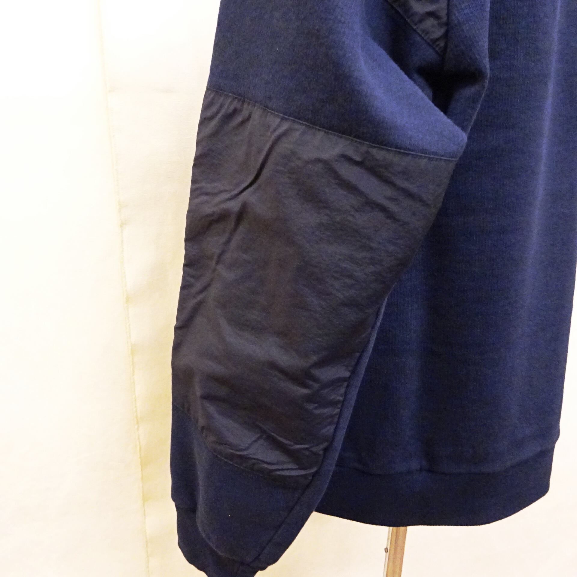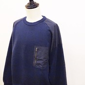 生地の編み地が縦目に入る地面の表情がアメリカっぽく粗野な雰囲気の1枚は、肩と肘には別生地を上から重ねて丁寧に縫い合わされており、デザインだけでは無く米軍ECWCSフリース同様の摩擦等に対する機能性も装備したスウェットになります。胸ポケットにも同じ別生地でファスナーポケットが付属されているので、ちょっとした小物を入れるのに役立ってくれます。