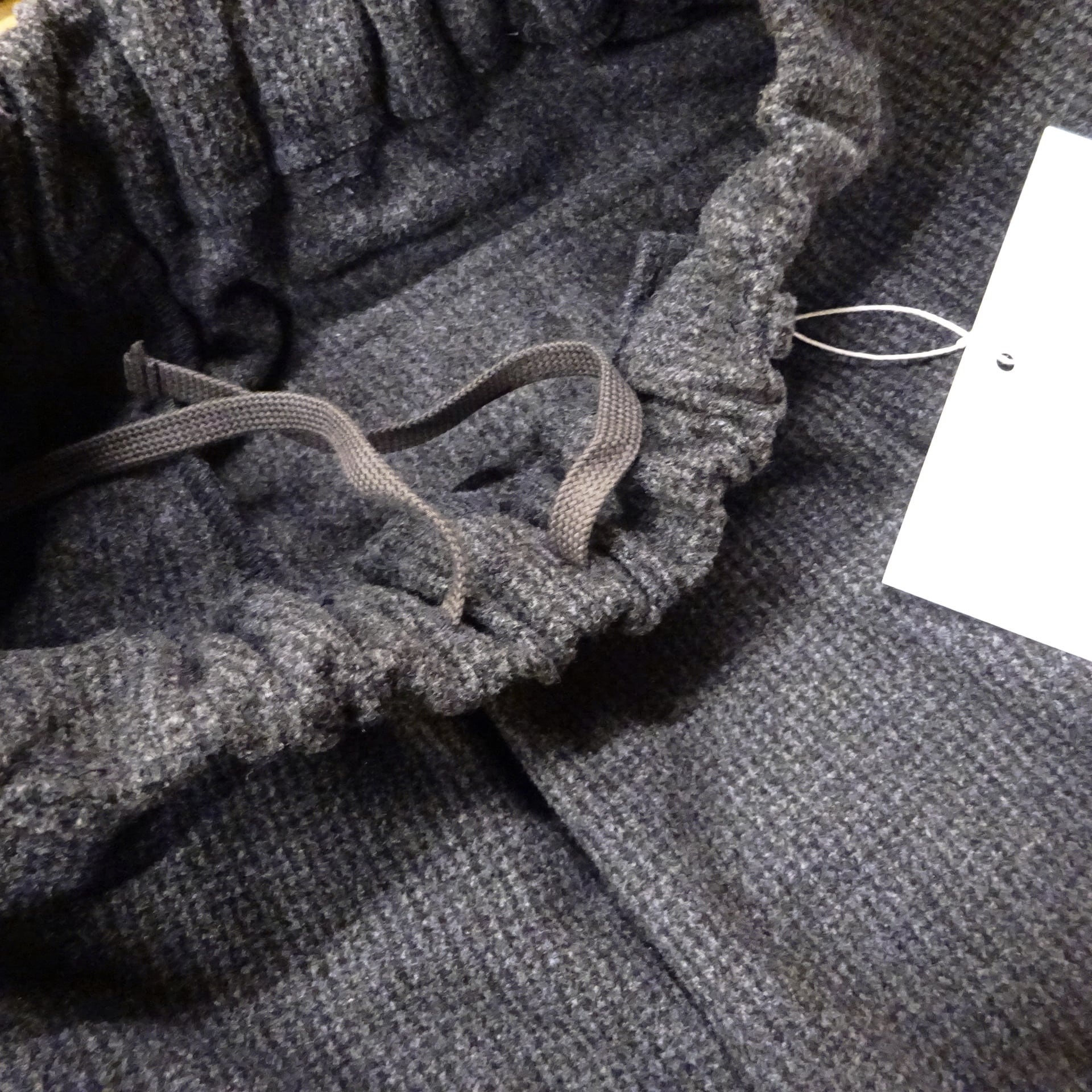 ニードルパンチで起毛感と布帛っぽい硬さと伸縮を抑えた加工を施しており、ウールのようにチクチク感や水洗いで大きく縮む事も無いので、メンテナンスが非常に楽なのも嬉しいポイントです。またカットソー素材ですので、軽くてリラックスした快適な履き心地になります。