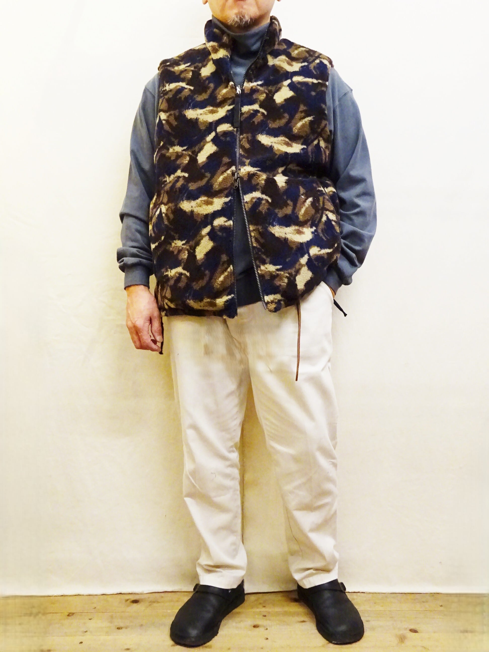 同ブランドにて展開するミリタリーラインの新作の1枚。表側には丈夫なリップストップ生地を使用し、ヘチマキルトのダウンステッチでミリタリーらしさを感じさせてくれる仕様、裏側は毛羽感のあるボアを採用し、防寒性と防風性を高めてくれる仕様になっています。