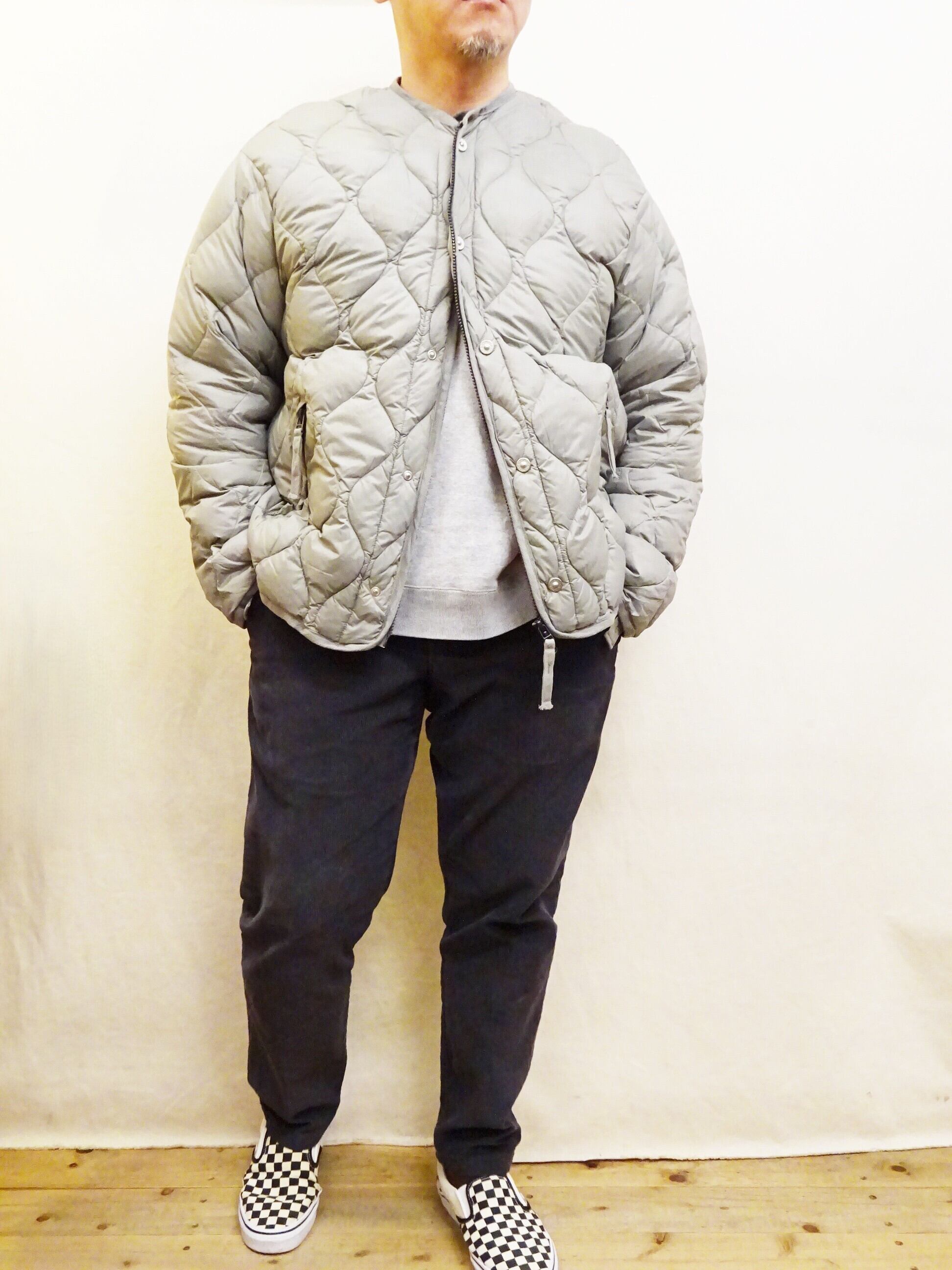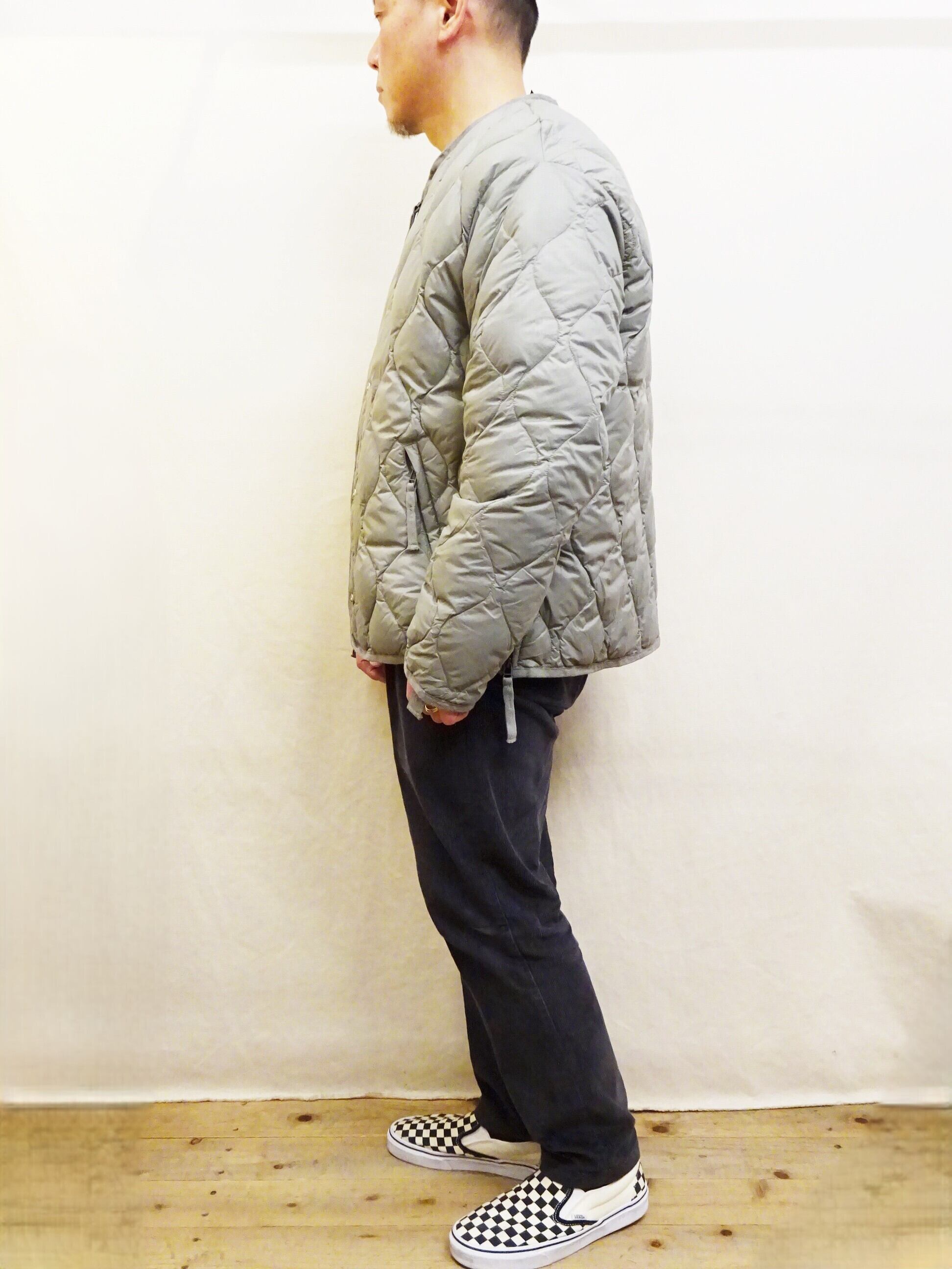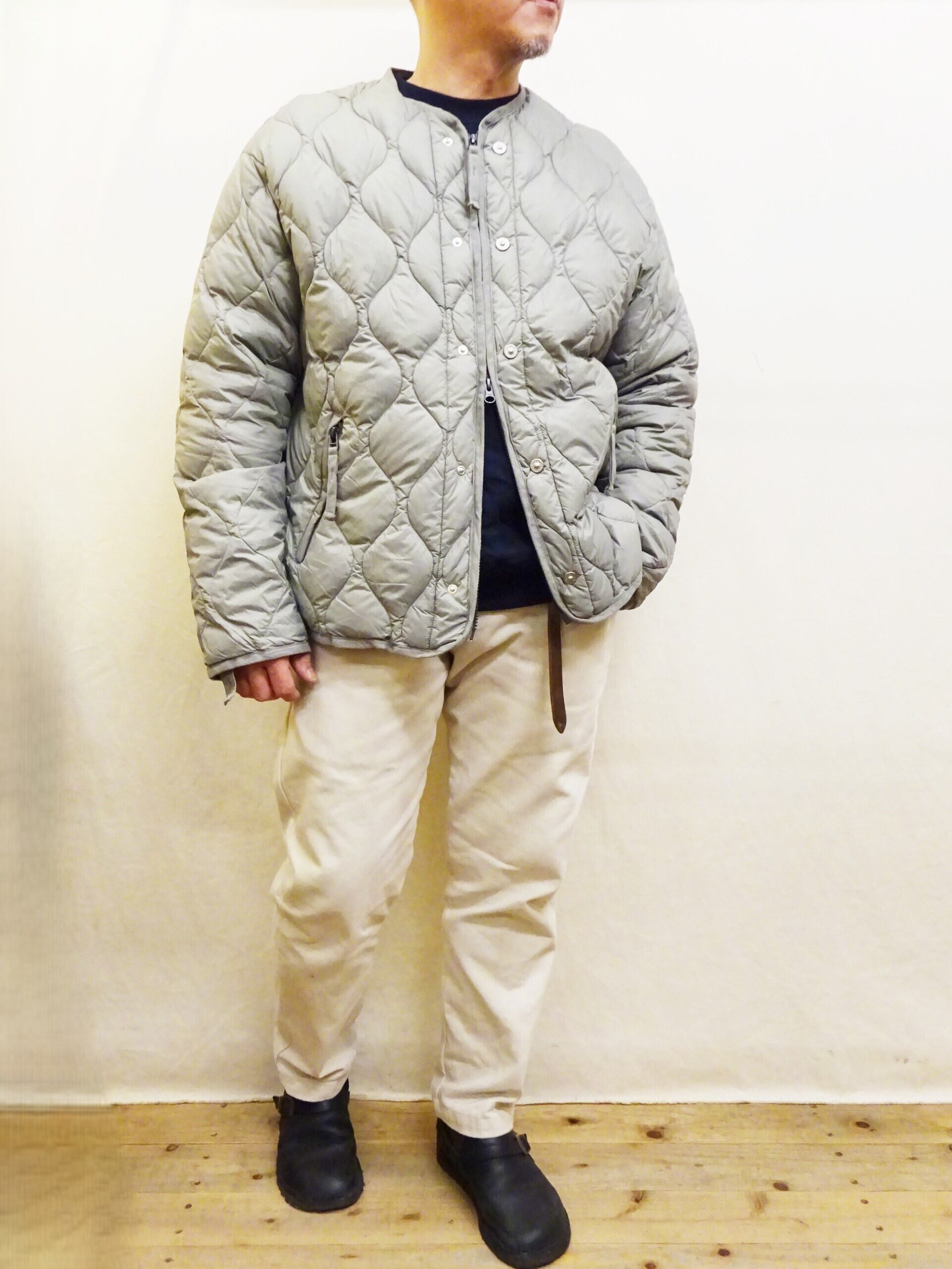 従来のインナーダウンとは違い、ワンサイズ大きめなシルエットに仕上げられているので、インナーを選ばず様々なスタイリングを楽しんで頂けます。個人的には少しルーズなスタイルで楽しみたいダウンジャケットです。是非様々なスタイリングと抜群の着心地をお楽しみ頂ければと思います。
