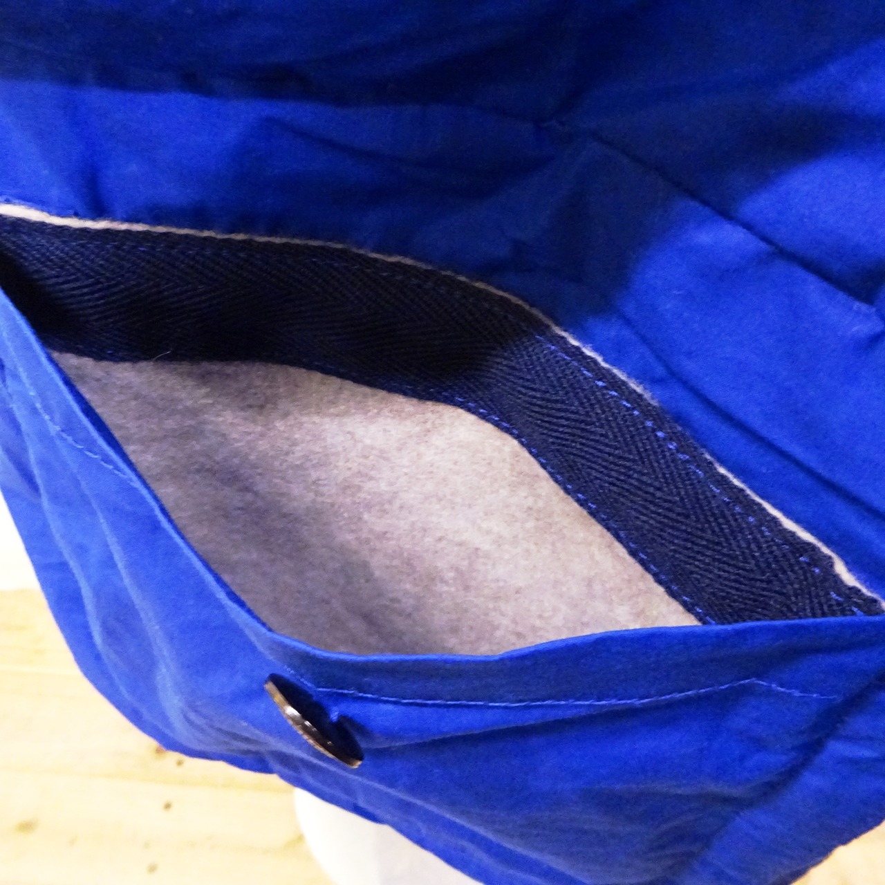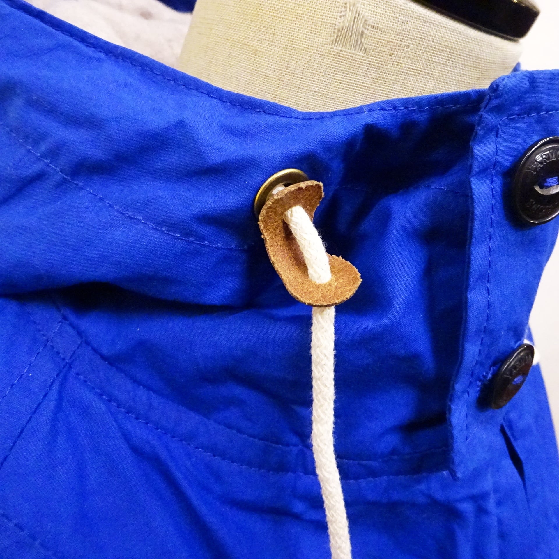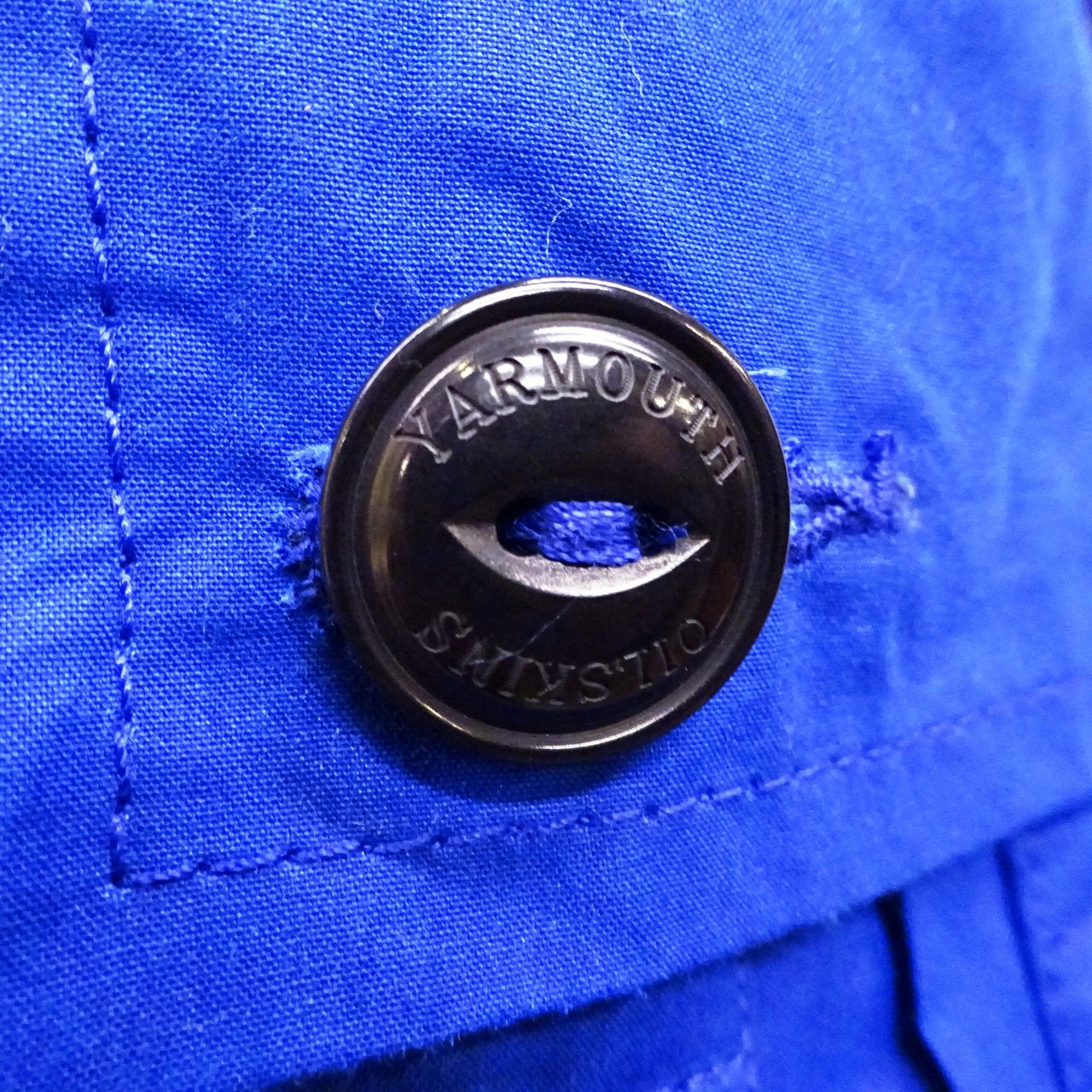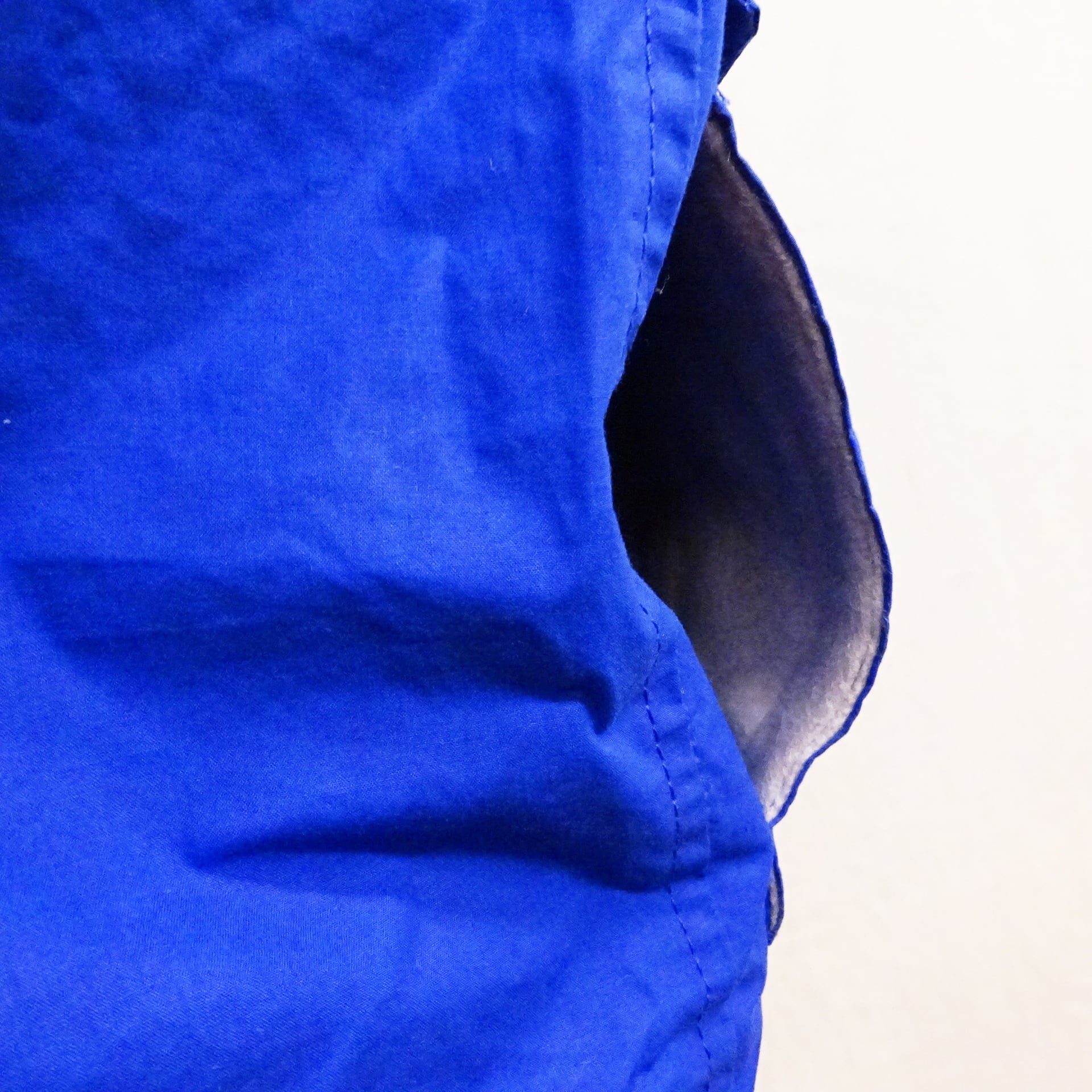 カラーは緊急時にも着用者が見える安全色の一つであるコバルトブルー。天然コットン特有の使い込むほどに風合いが増し、自然にシワや汚れを吸収しながら、より美しい風合いへと変化していく過程を存分に楽しんでいただけるカラーです。