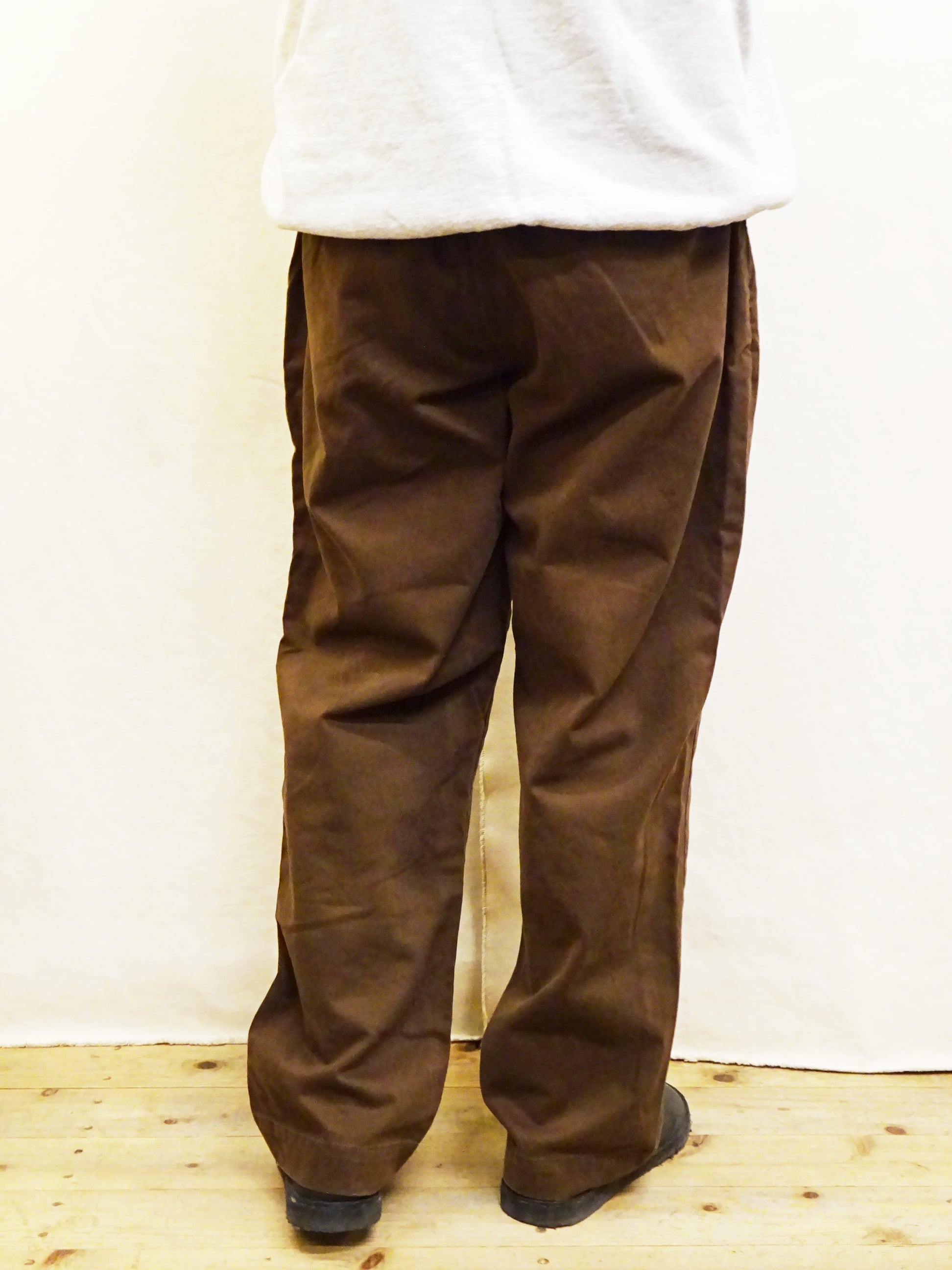 ヒップ、太もも回りがリラックスして穿ける大きめのサイズから、GOODな生地感、カラーのチノをチョイスし、ウェストにゴムを内蔵することでイージーに履けるリラックスシルエットのパンツになります。