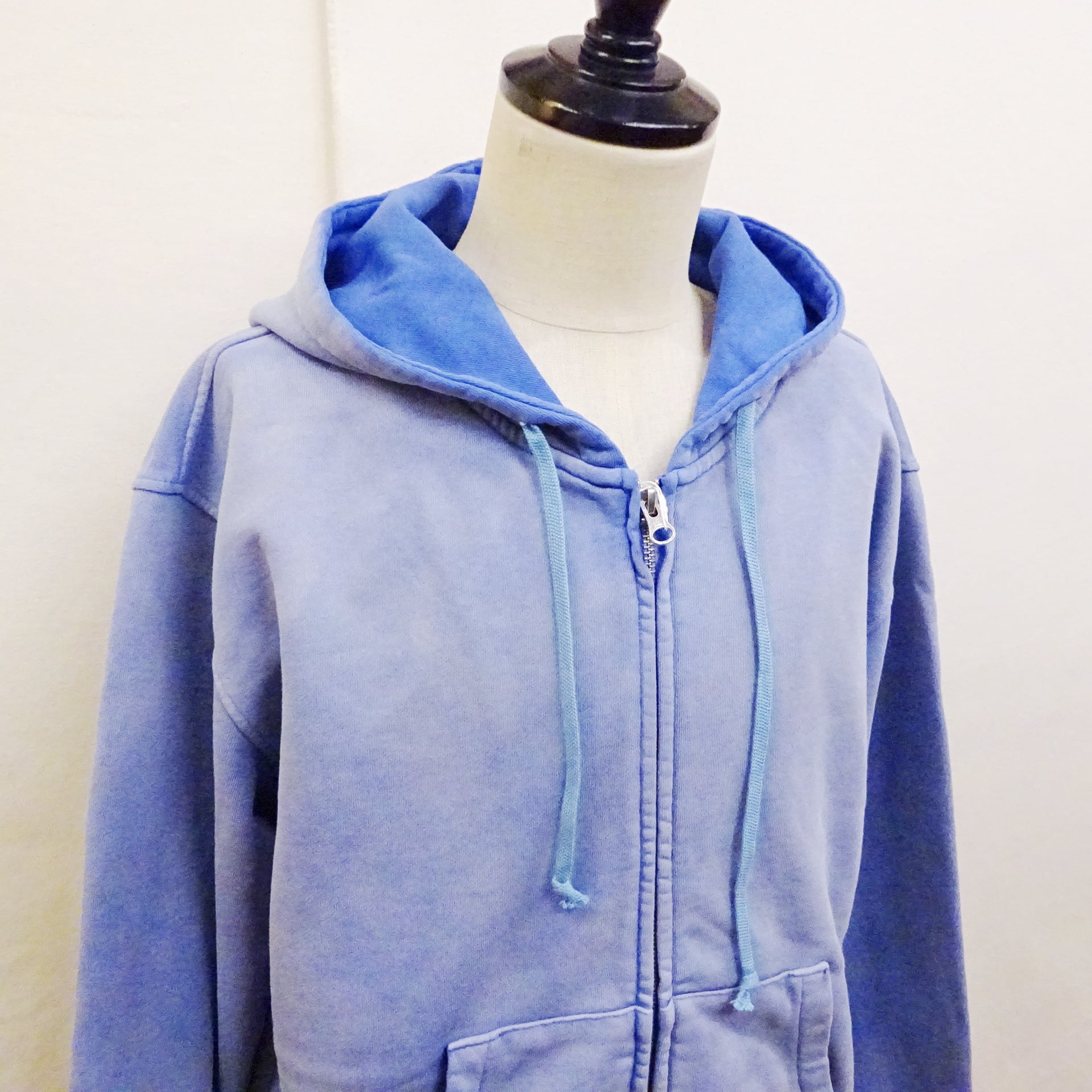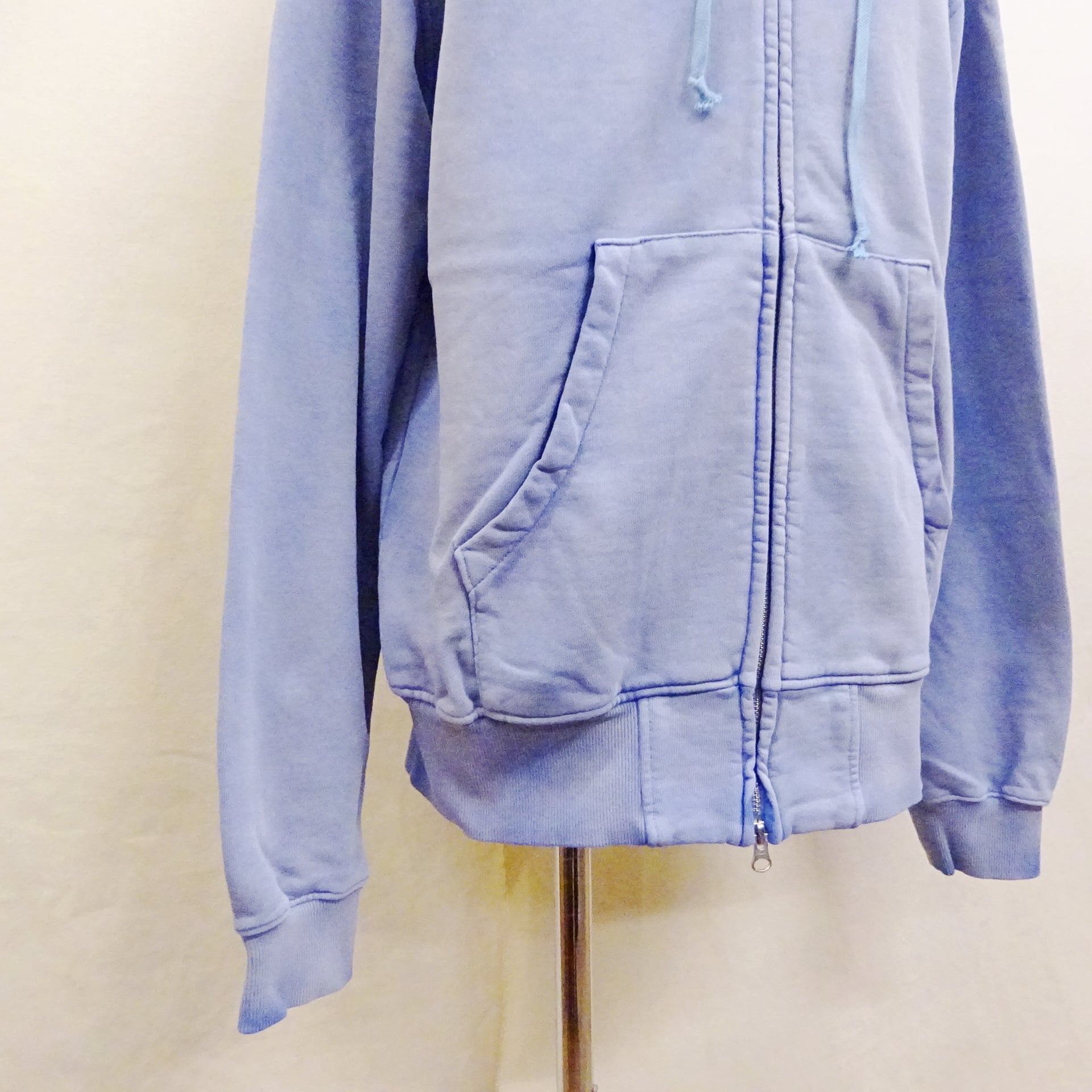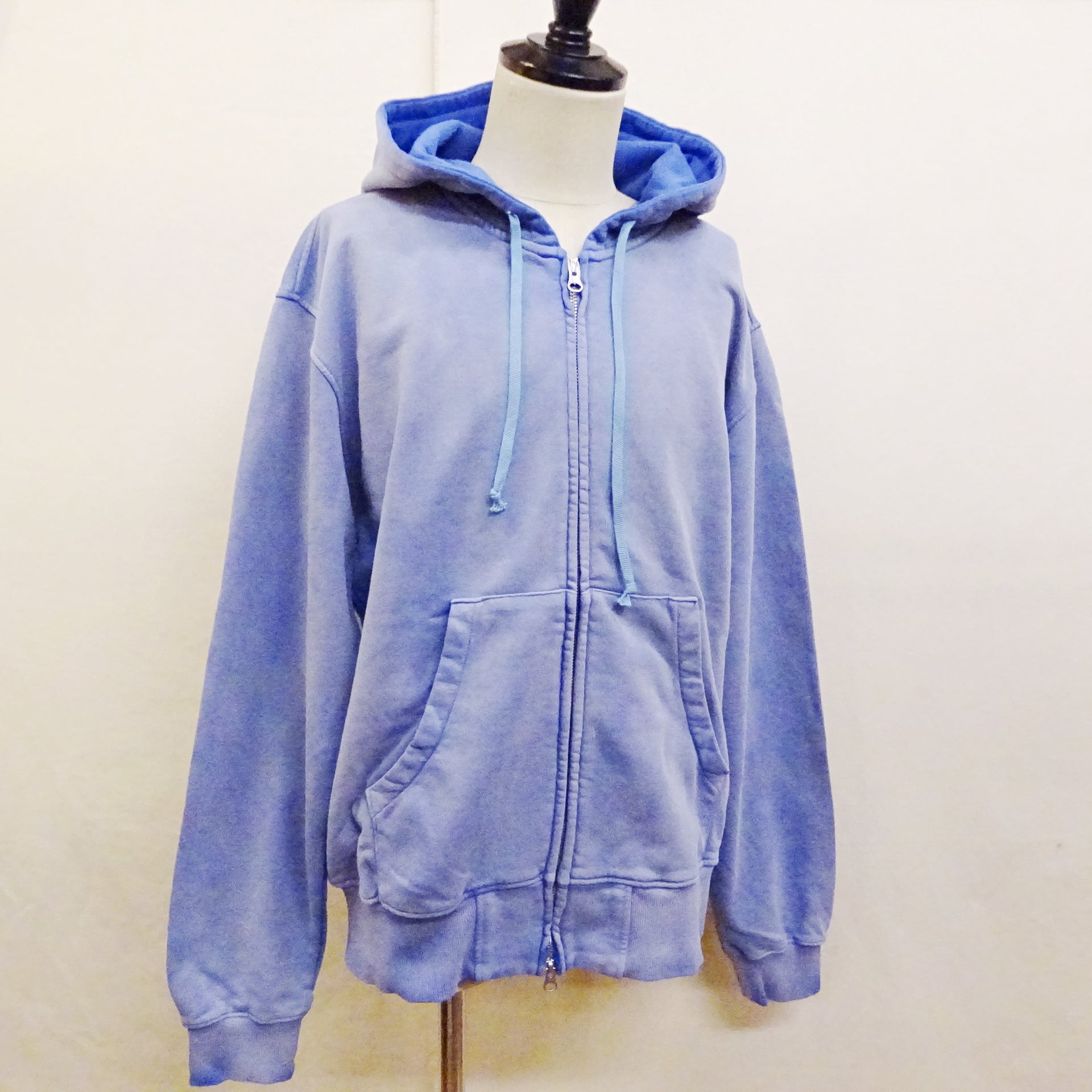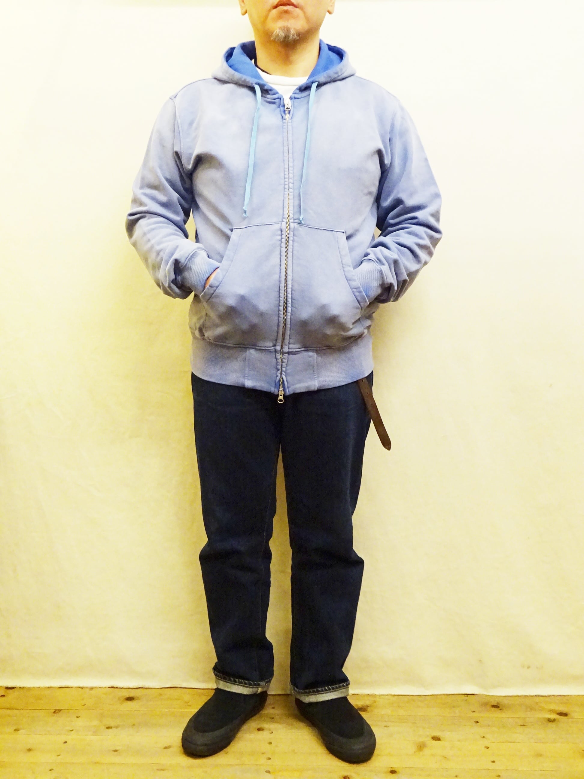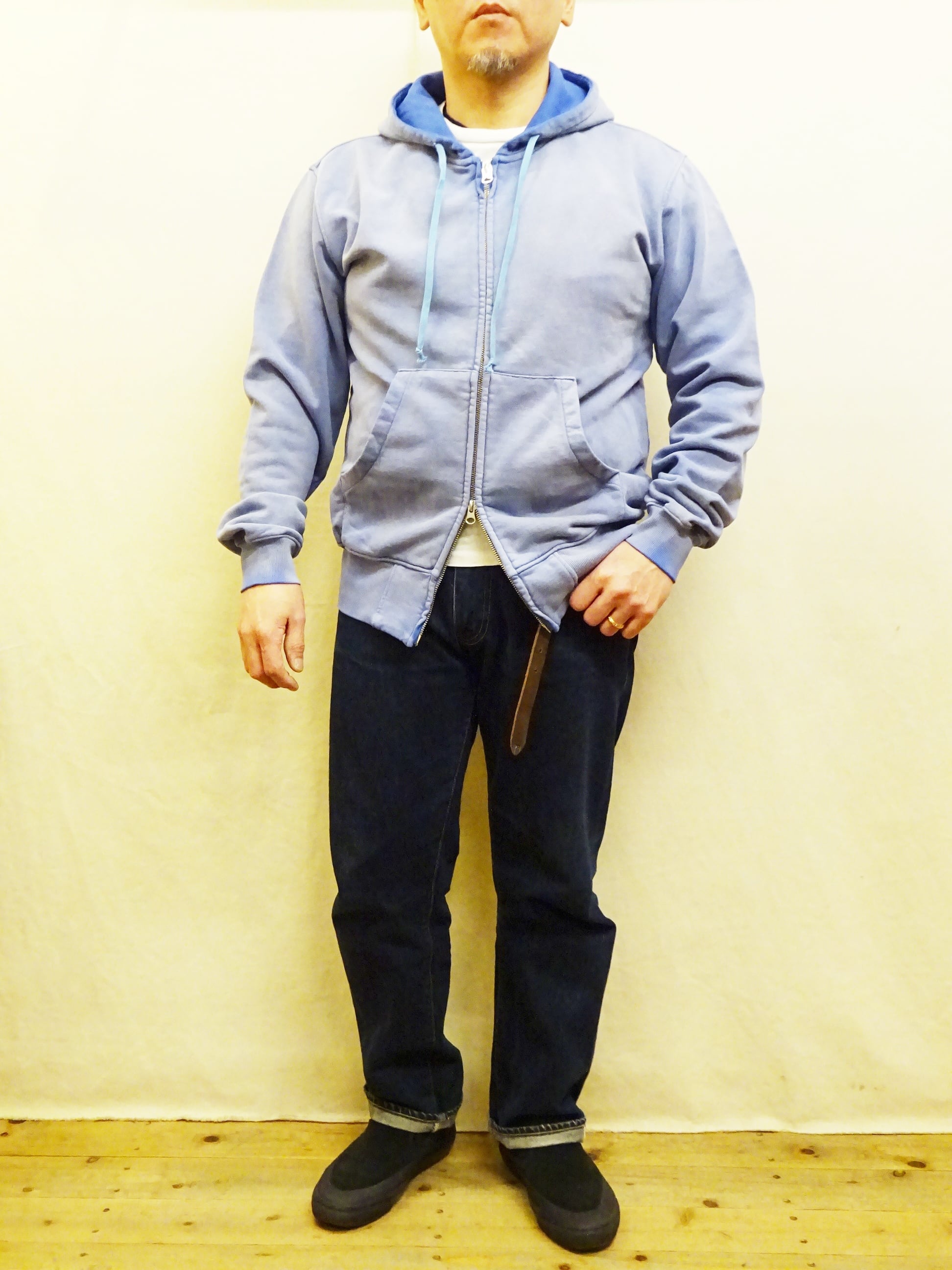 メンズ服では定番アイテムなジップパーカーに、ヴィンテージ感を意識したフェード加工が施され最初から雰囲気のある表情に仕上がったジップパーカーのご紹介です。