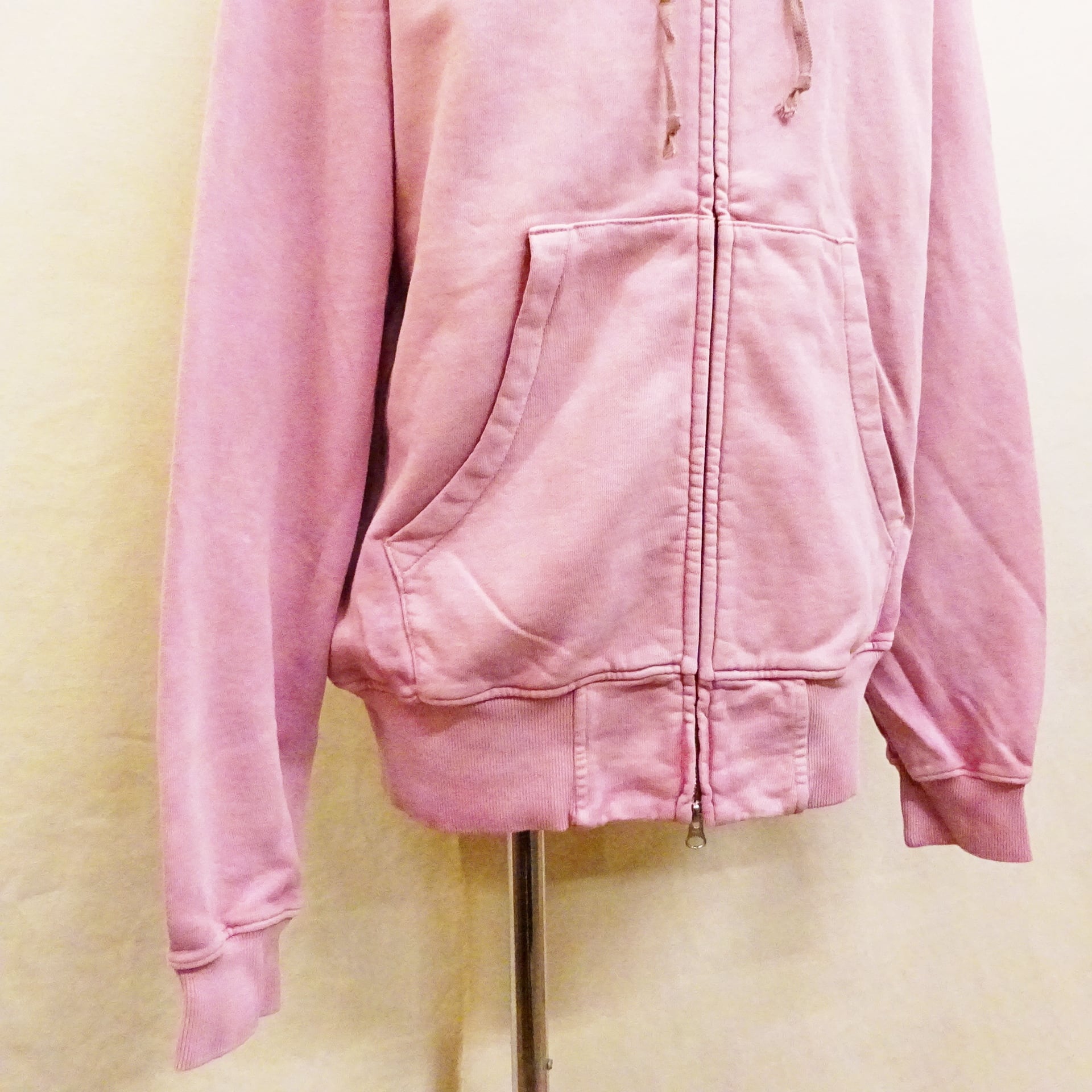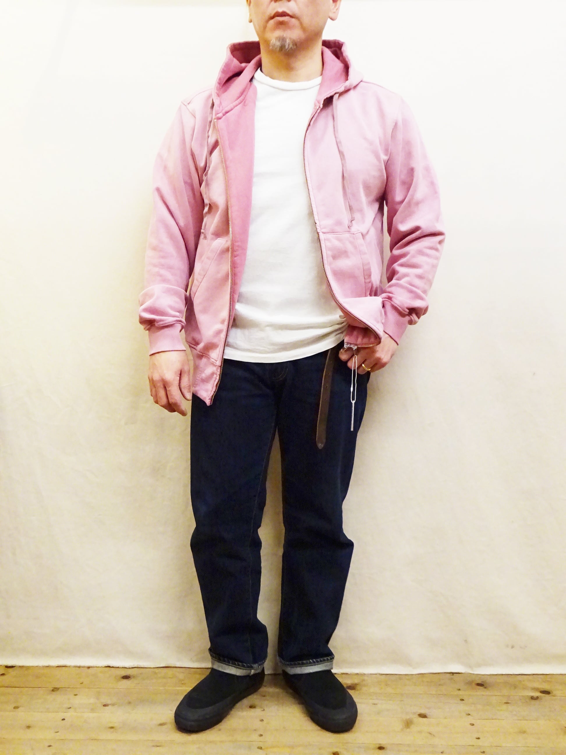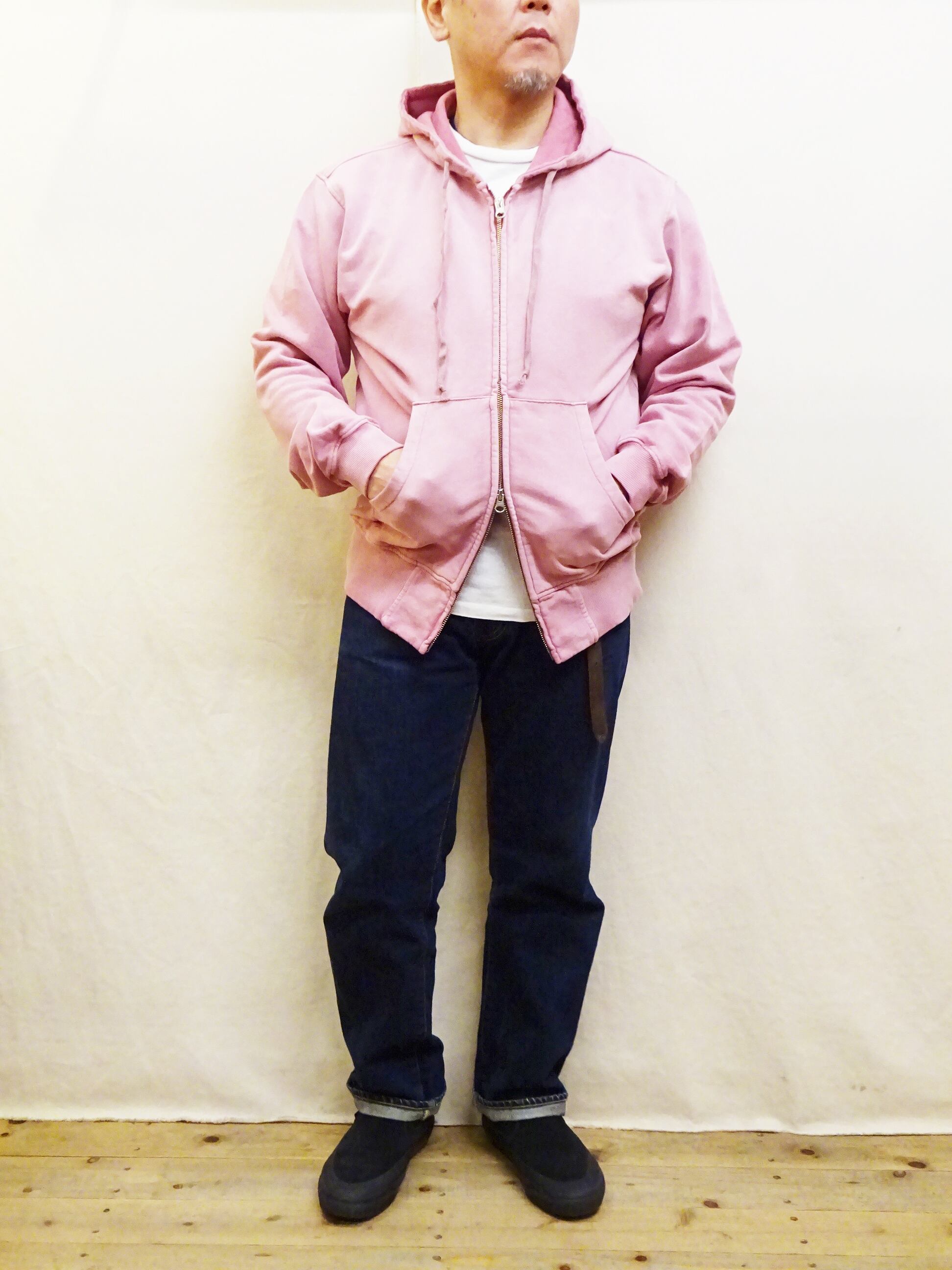 メンズ服では定番アイテムなジップパーカーに、ヴィンテージ感を意識したフェード加工が施され最初から雰囲気のある表情に仕上がったジップパーカーのご紹介です。