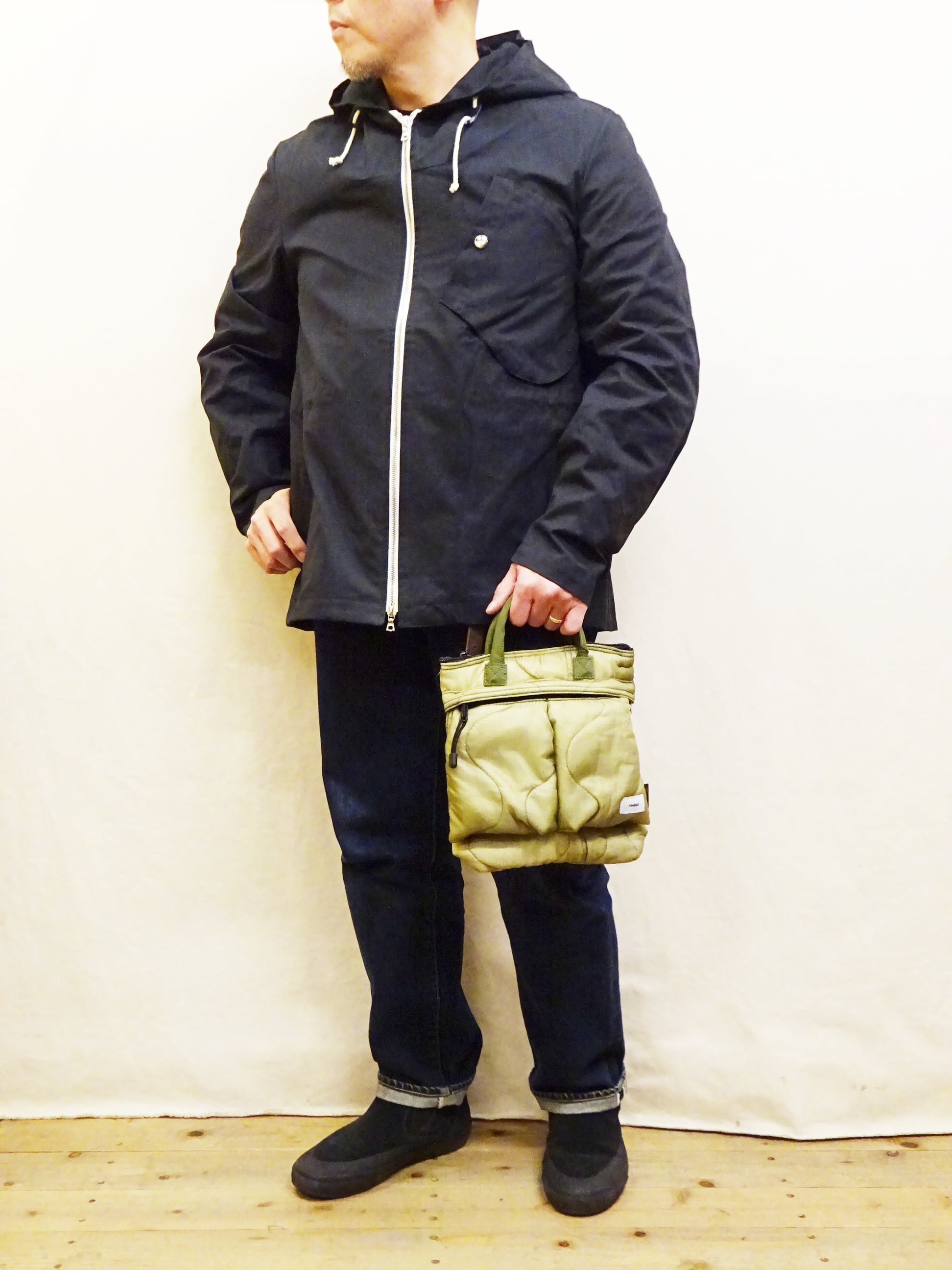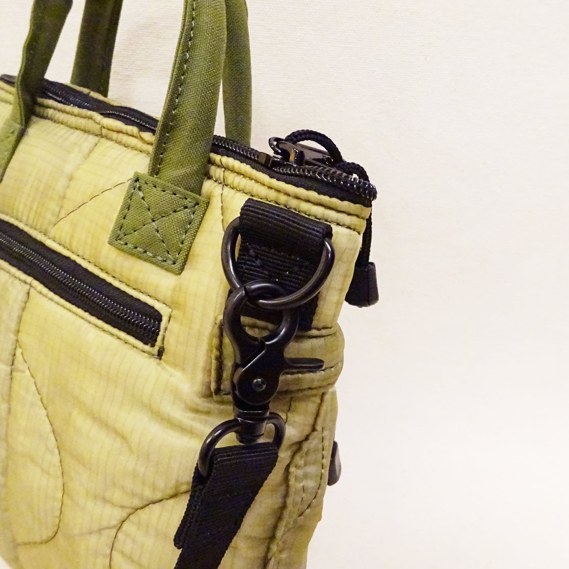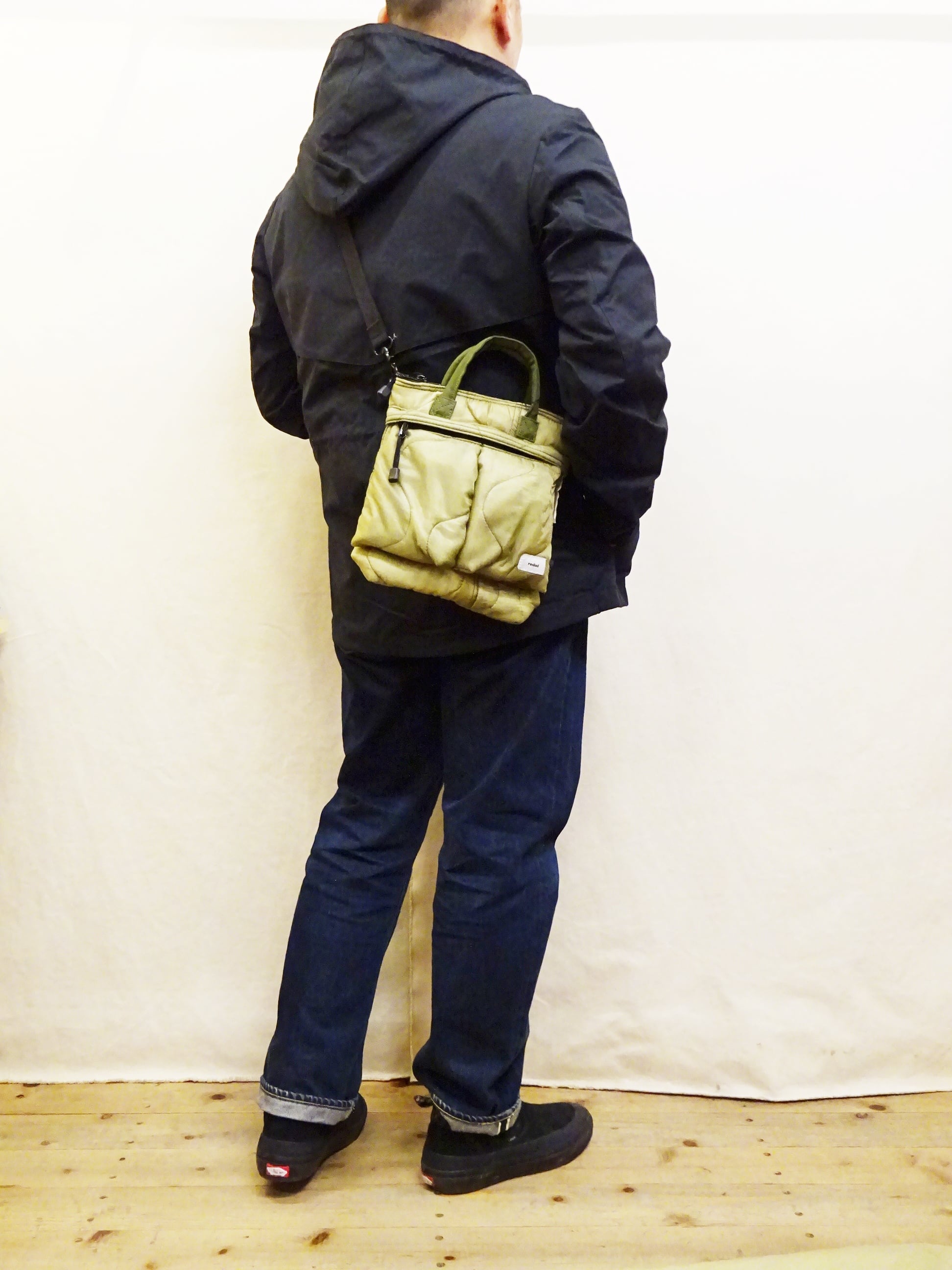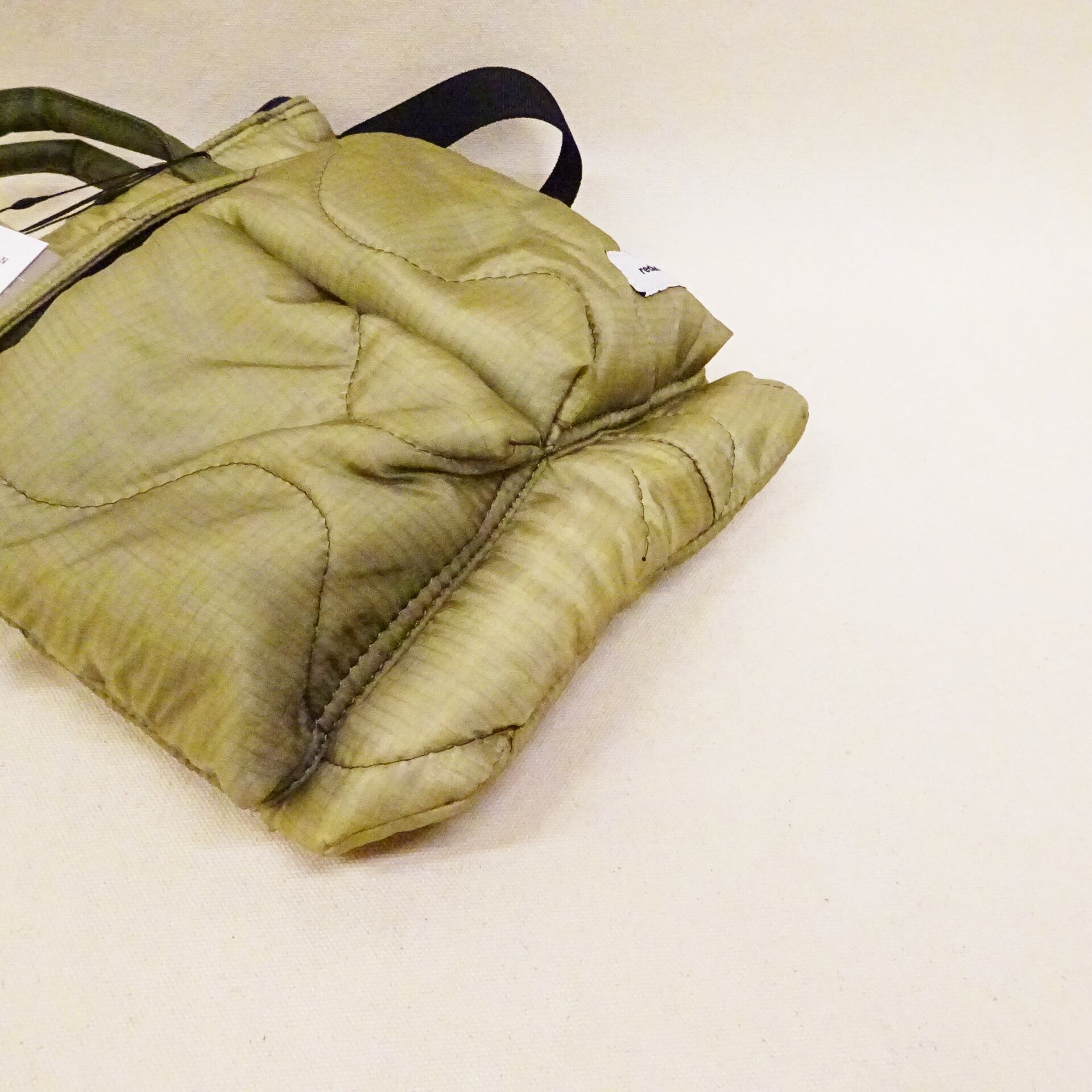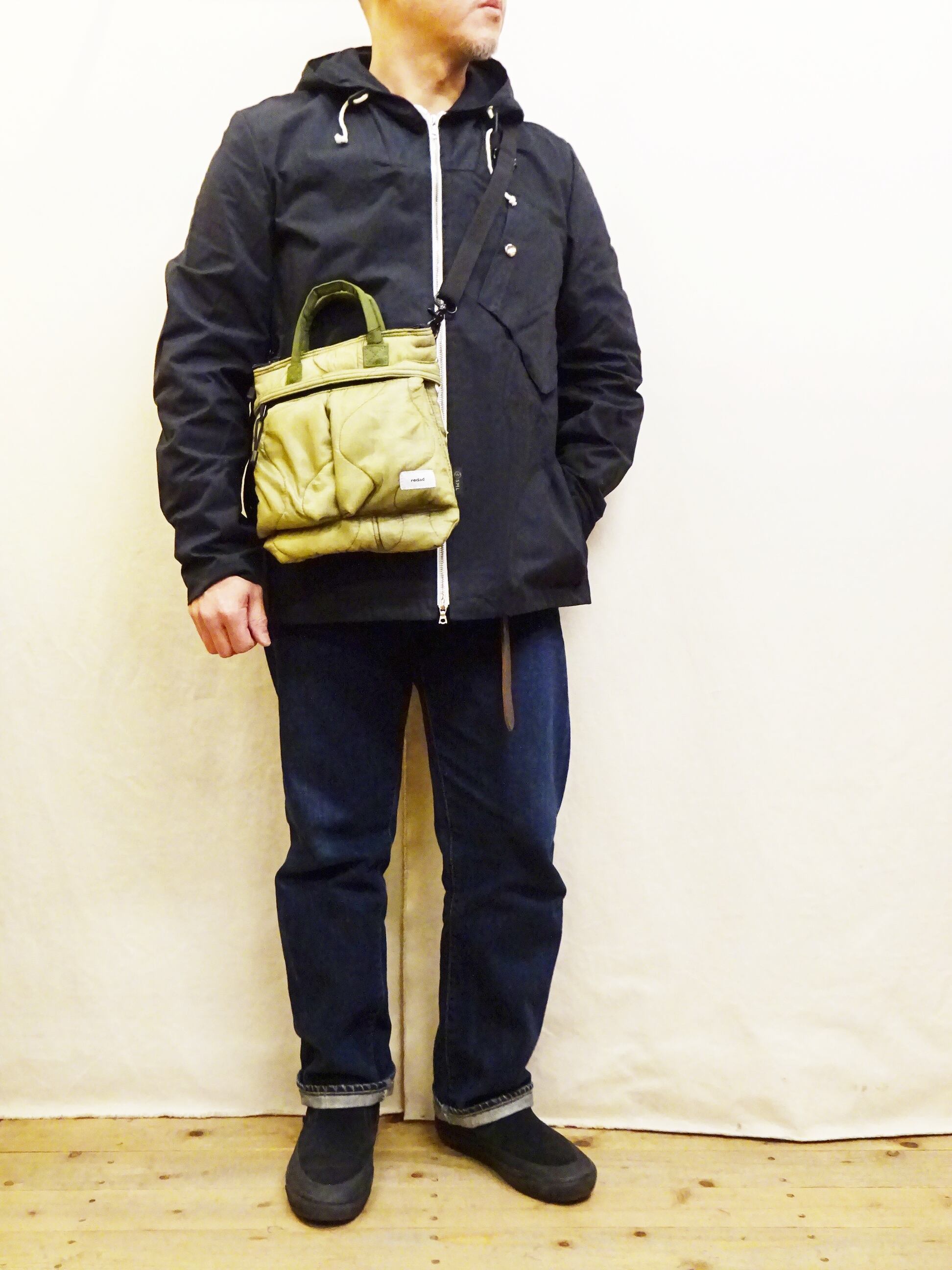 今回使用された素材はredadが得意とする80年代頃のデッドストック キルティングライナー。そちらを解体し再度SMLらしいデザインのヘルメットバッグに再構築された非常に雰囲気のあるバッグになります。