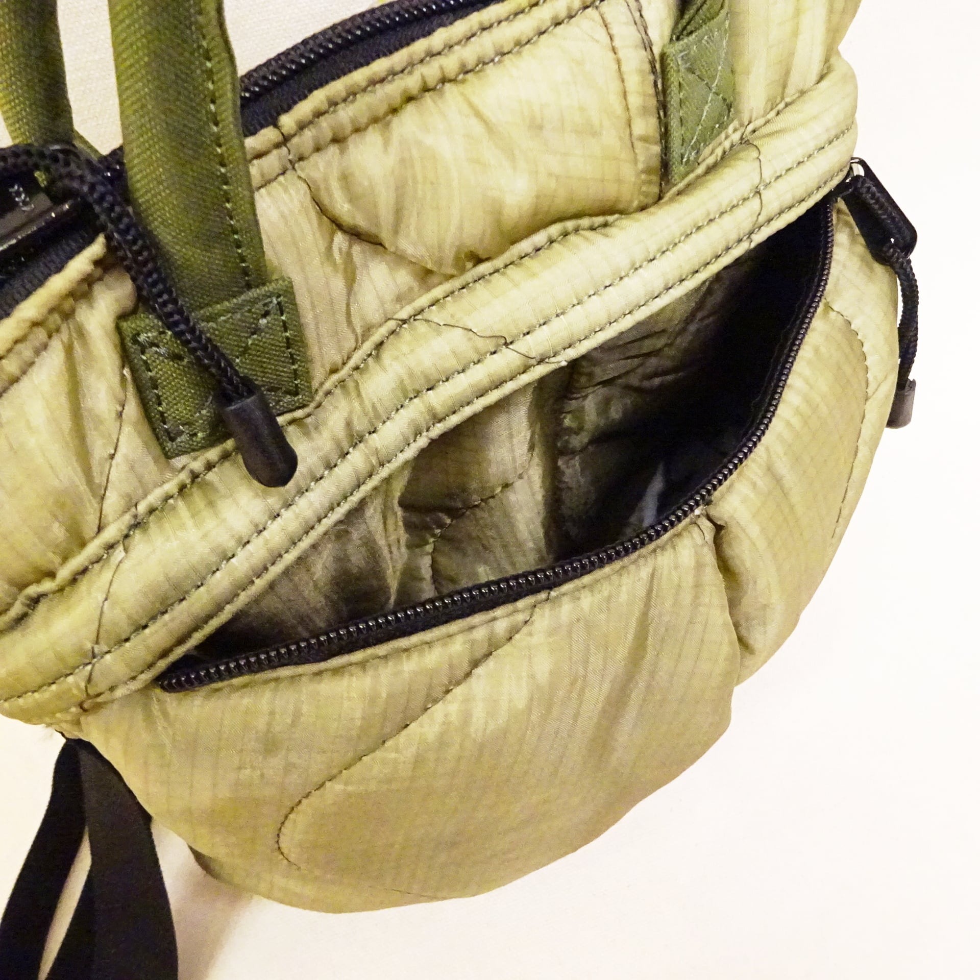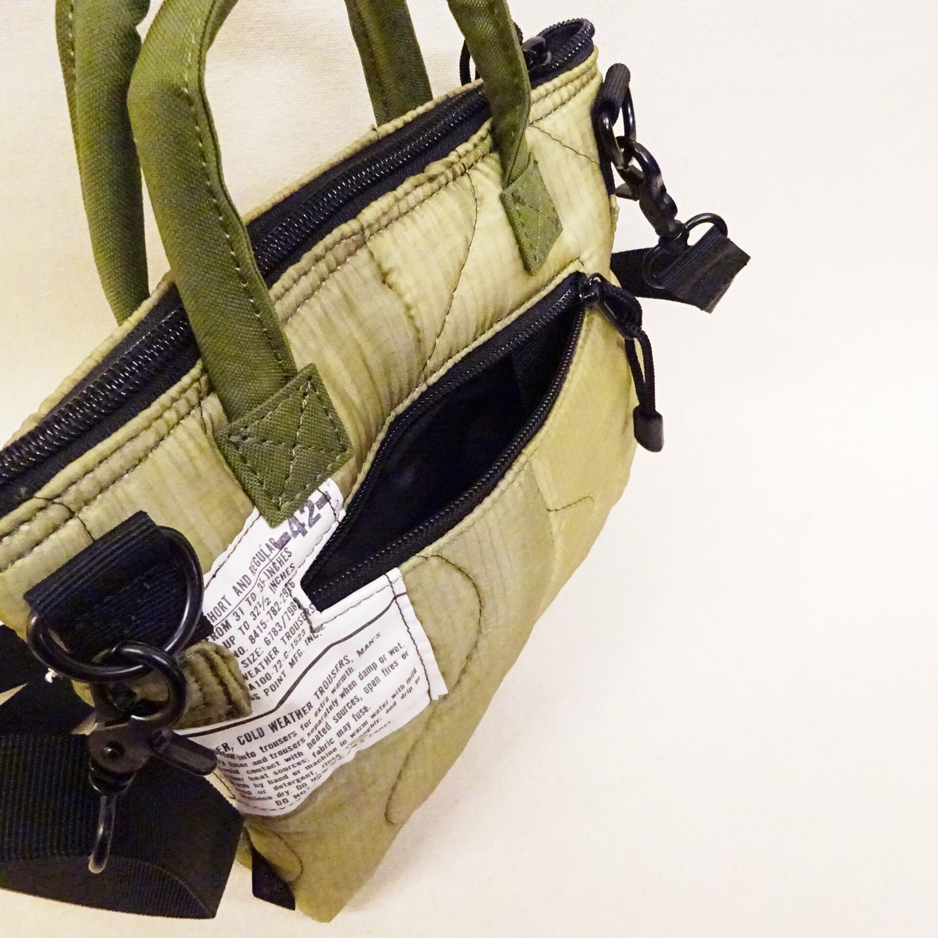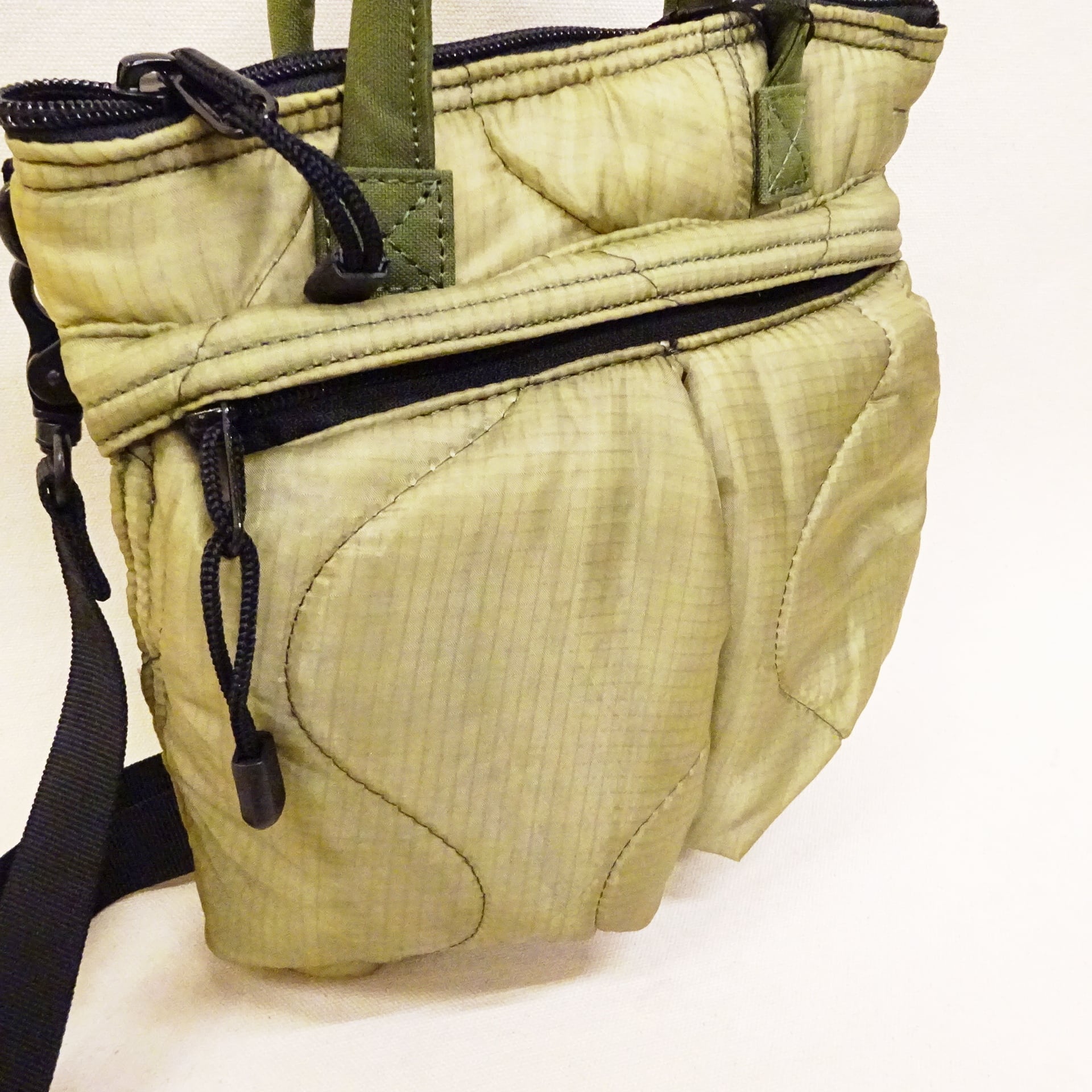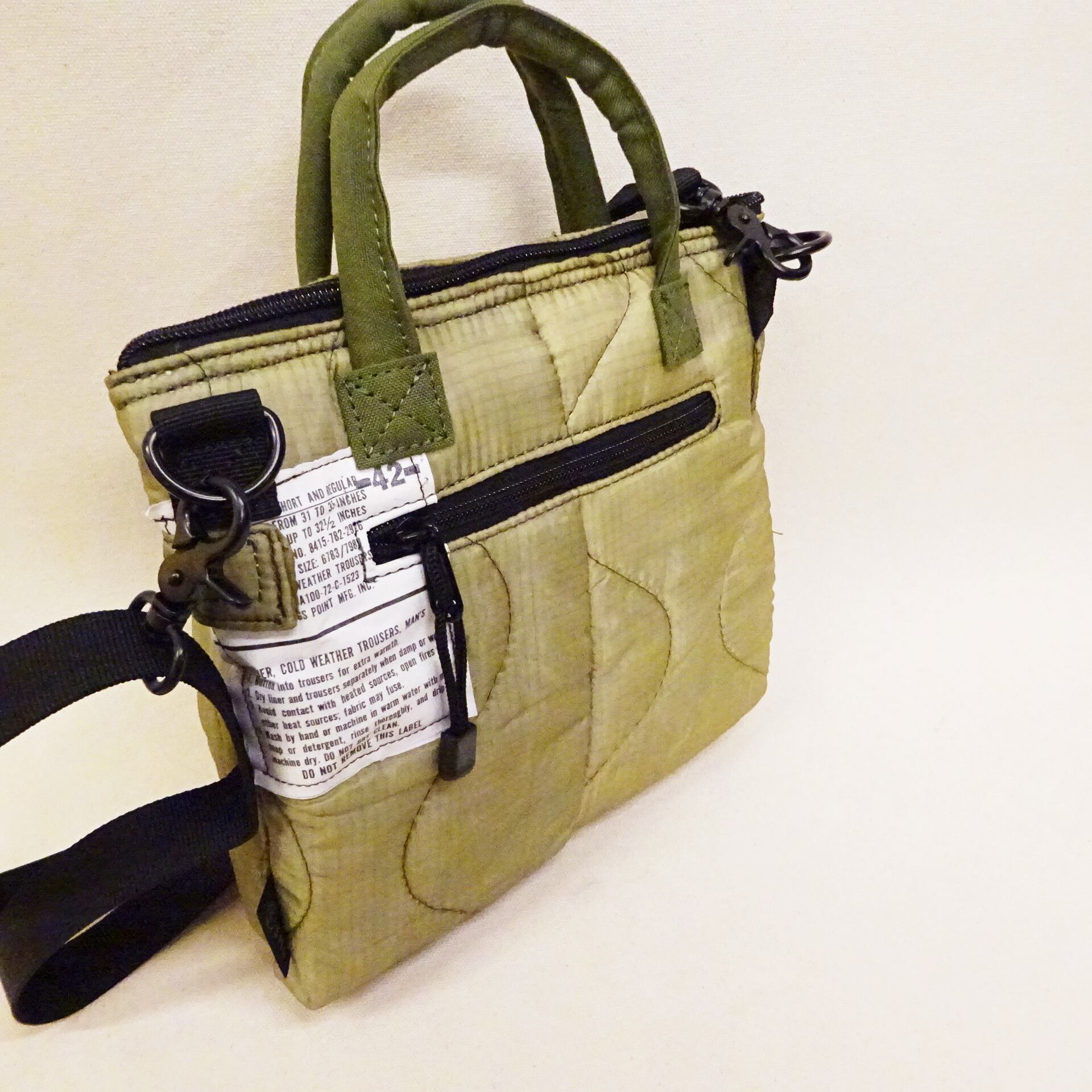 今回使用された素材はredadが得意とする80年代頃のデッドストック キルティングライナー。そちらを解体し再度SMLらしいデザインのヘルメットバッグに再構築された非常に雰囲気のあるバッグになります。
