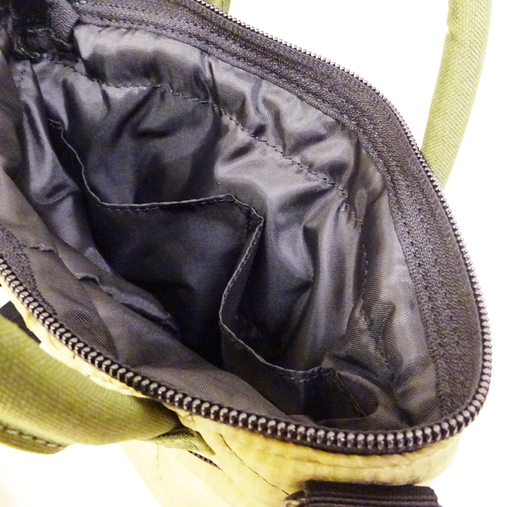 内側と前面のポケット2つ、隠れたマチによる深い収納で、携帯・財布、ちょっとした小物の手回り品を難なく入れられます。