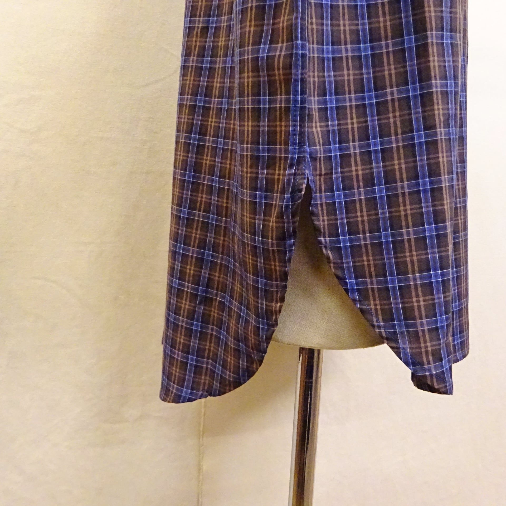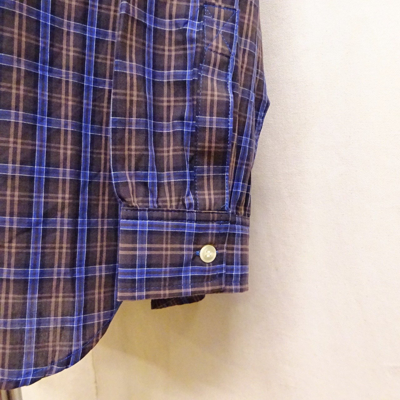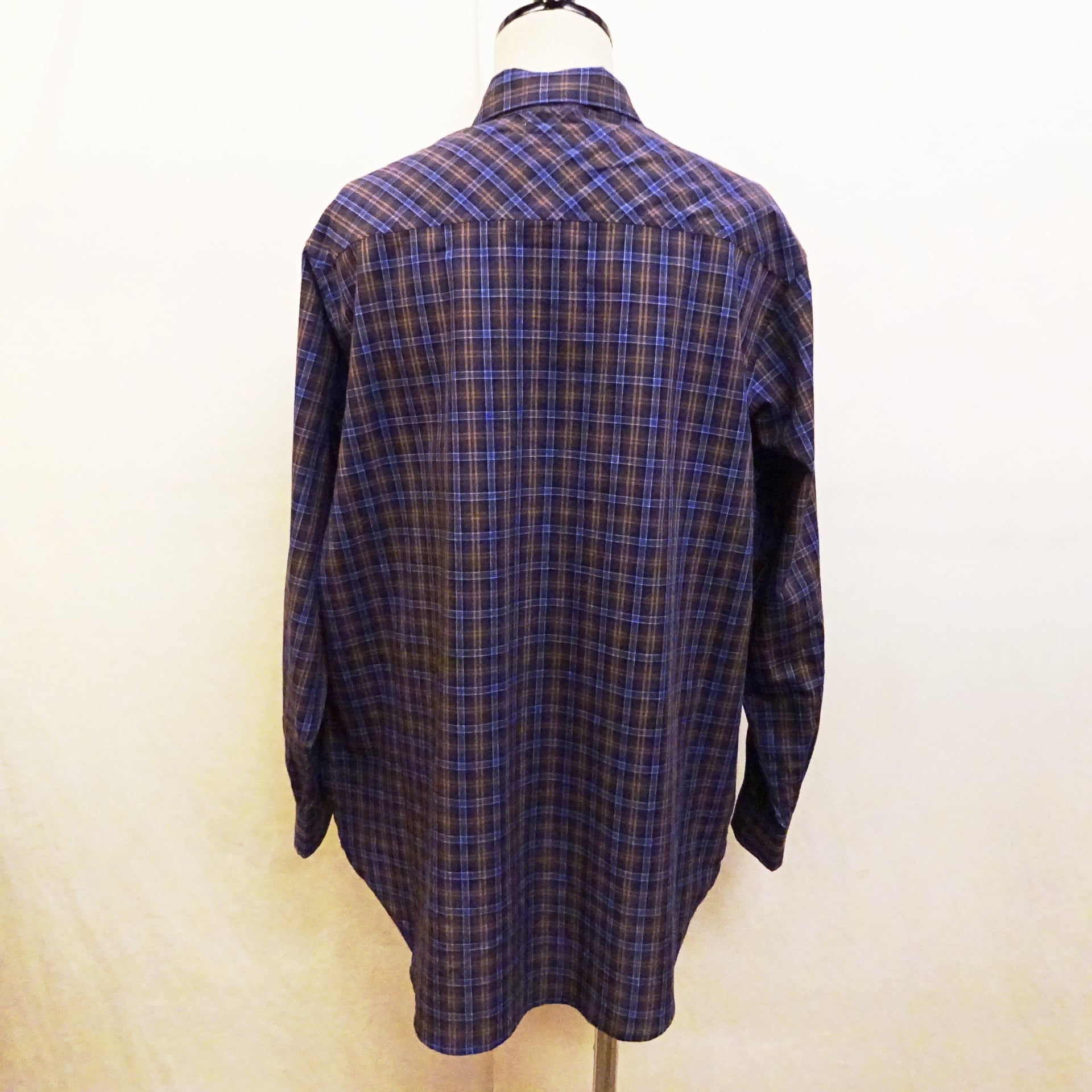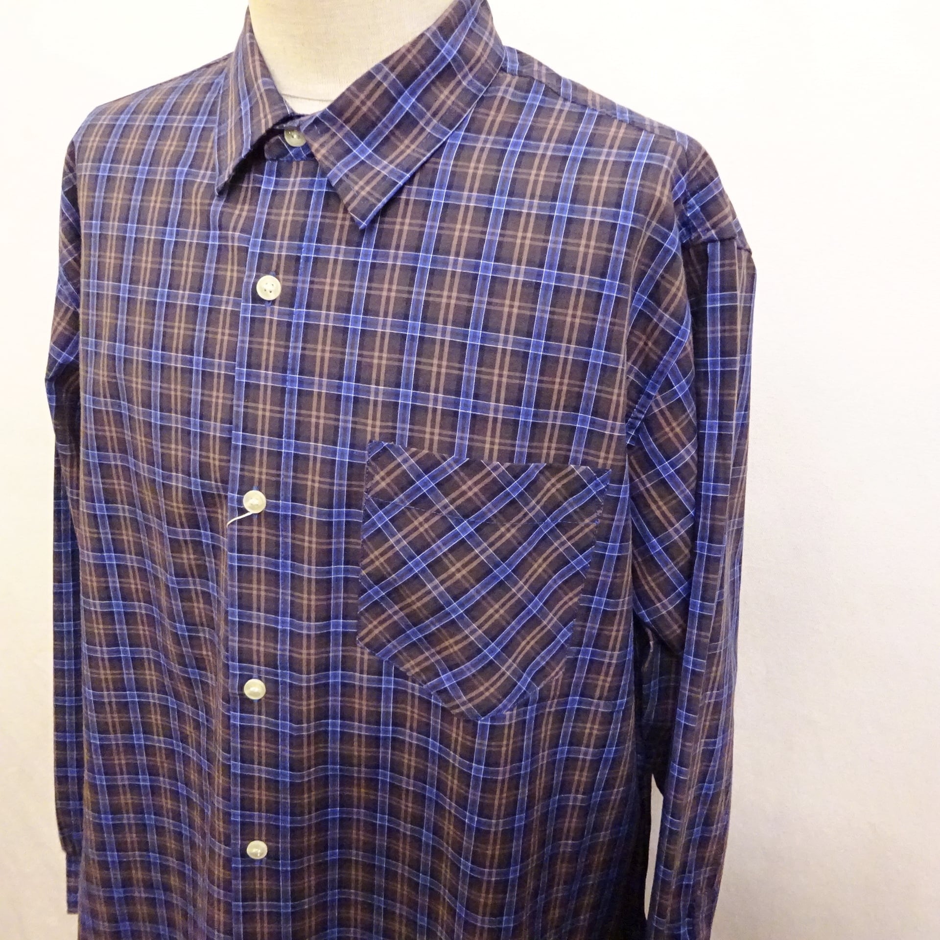 90年代頃のアメリカシャツによく見るブロード織りのチェック柄シャツ。程良い薄手の生地に、着丈や身幅のバランスもプレーンでsimple is bestな1枚。普段はシャツを着ない方にも気軽に着て頂けるシャツになります。