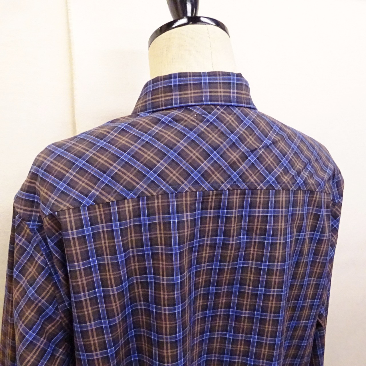 クラシック感が漂うBROWNxNAVYのチェック柄で、デイリーに着て頂けるシンプルなレギュラーカラーシャツのご紹介です。