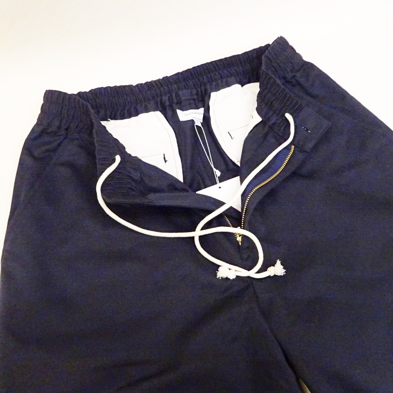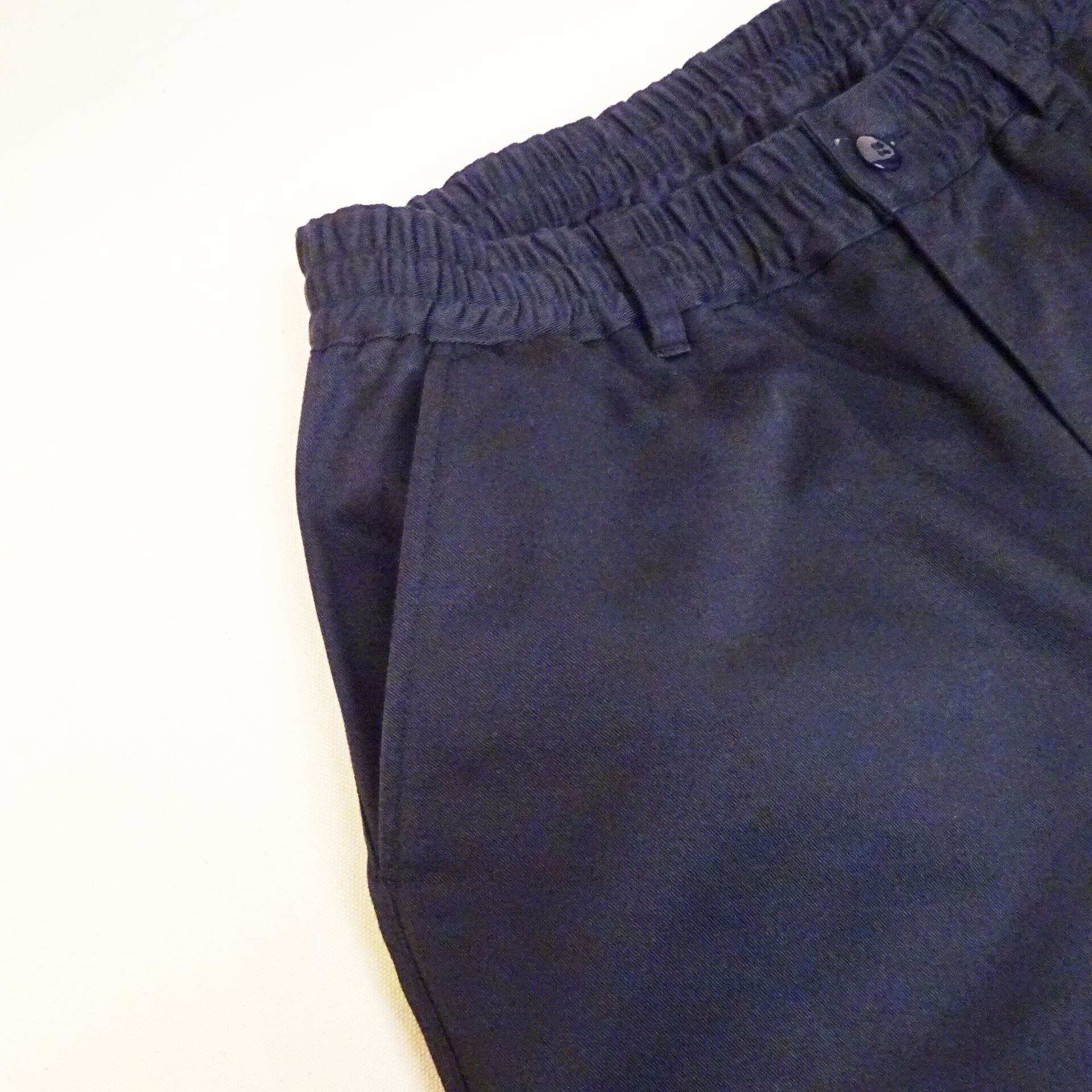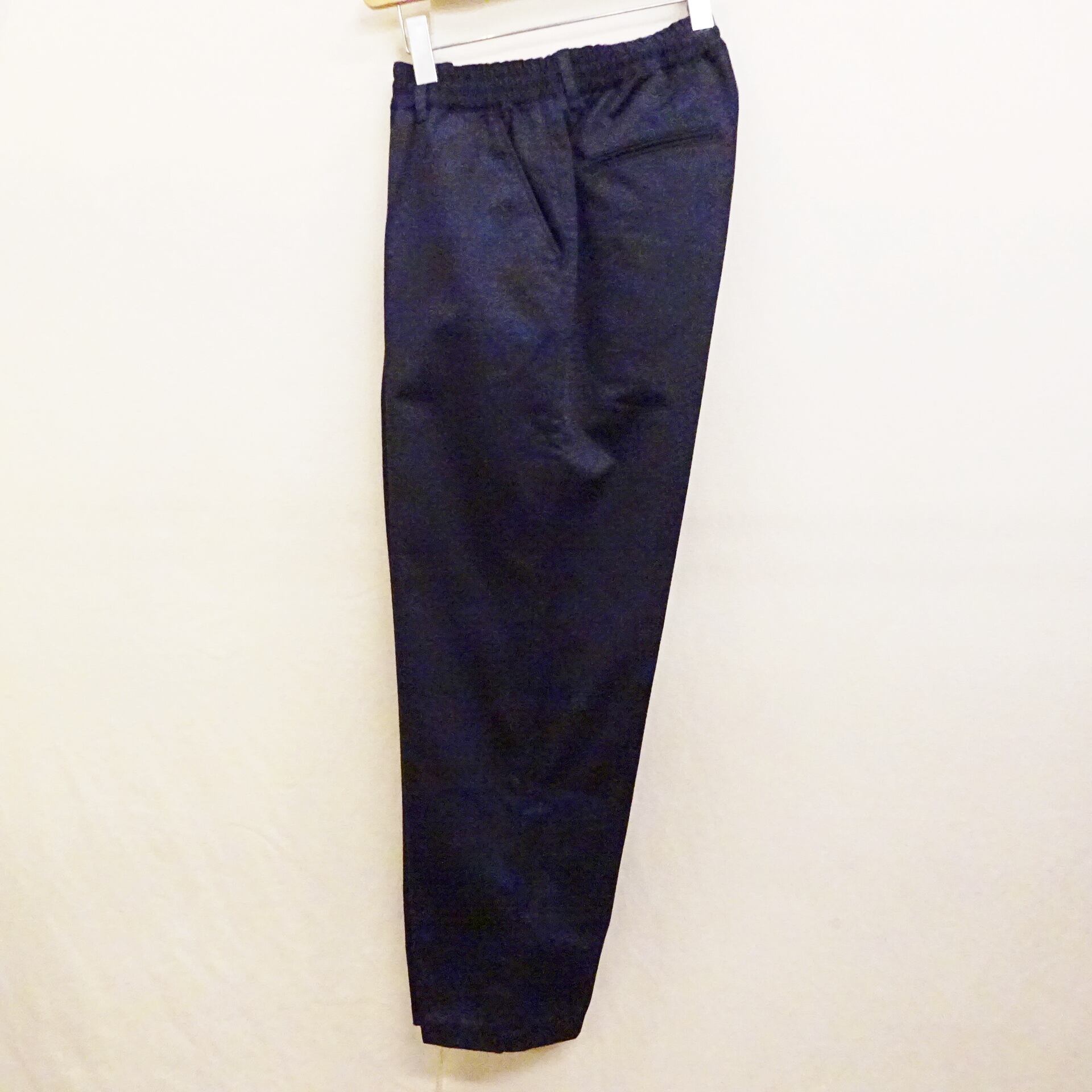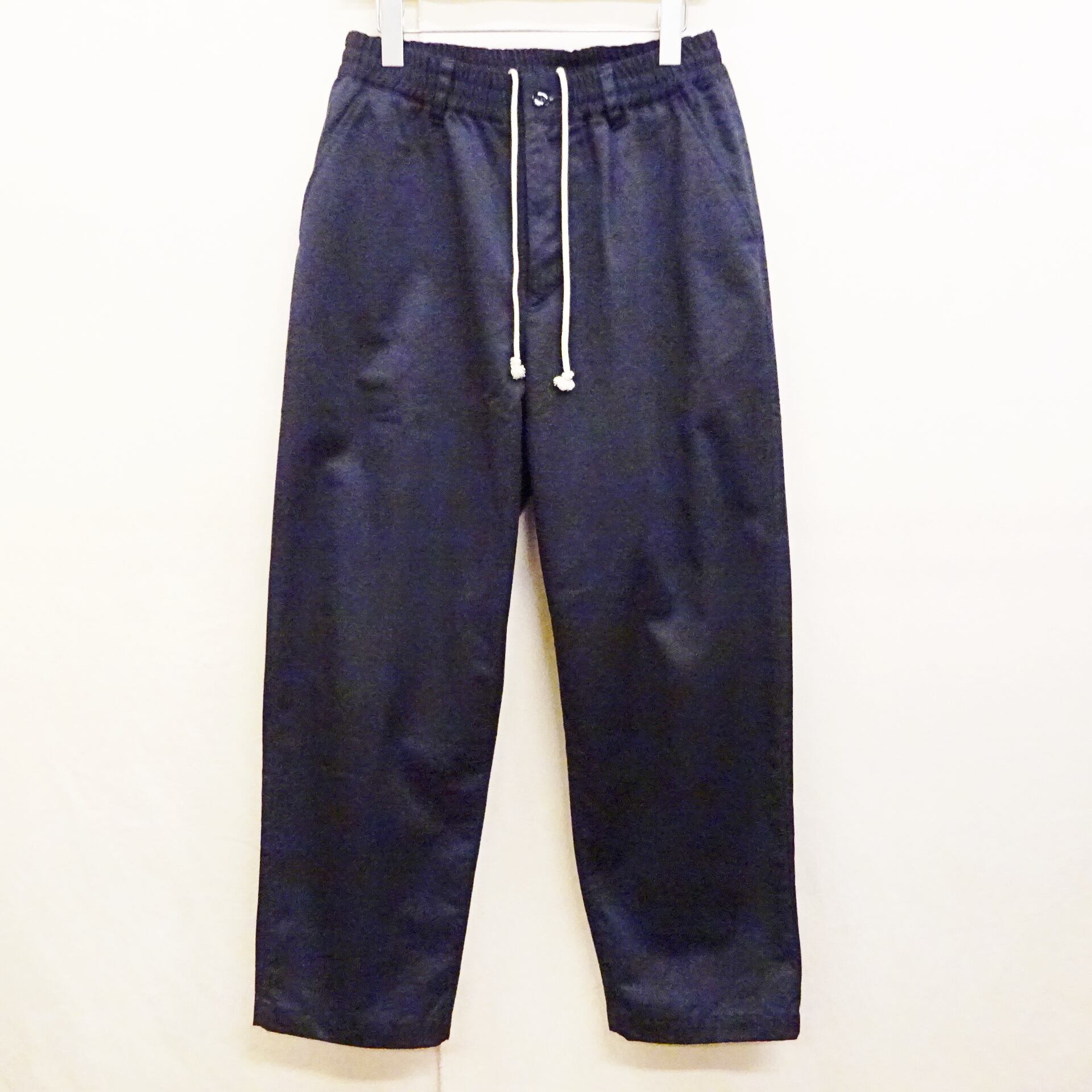 ウエストはゴムとドローストリングでフィット感を調整しながら快適に穿けるこちらは、深めの股上とワイドテーパードラインで脚をすっきり見せてくれる上品なシルエットが特徴のパンツになります。