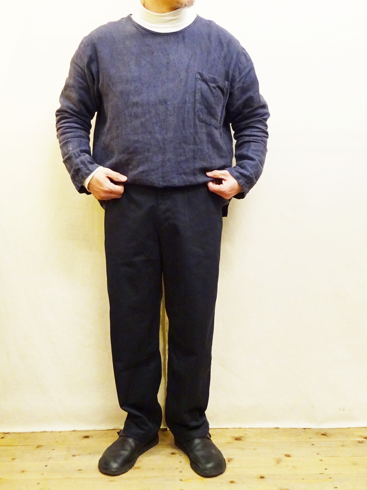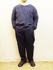 ベルトループも有るのでタックイン・アウト共に使いやすく、シンプルながら両玉縁ポケットなど細部もしっかりとした作りの日本製の1本。様々なシーンで活躍してくれる非常に出番の多いパンツだと思います。