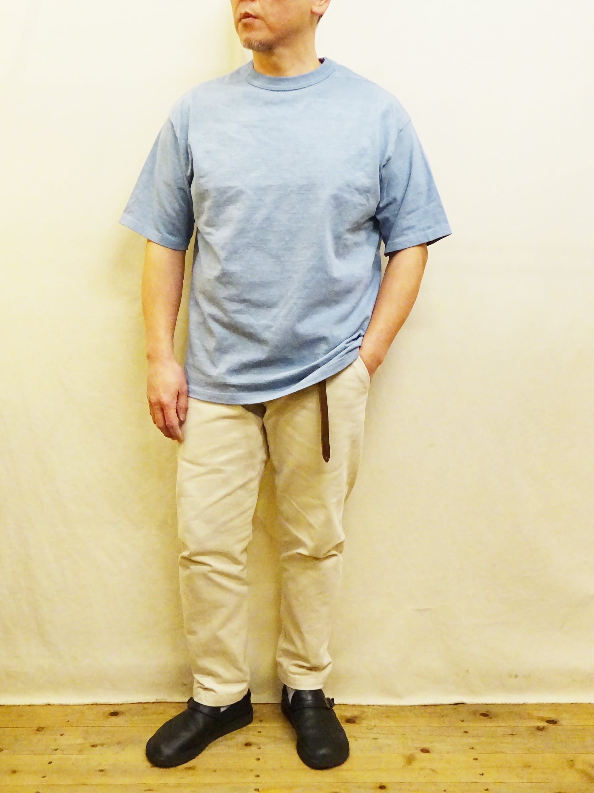 2種の糸から生まれる素朴なムラ感と、製品染めした独特な風合いをお楽しみいただけます。