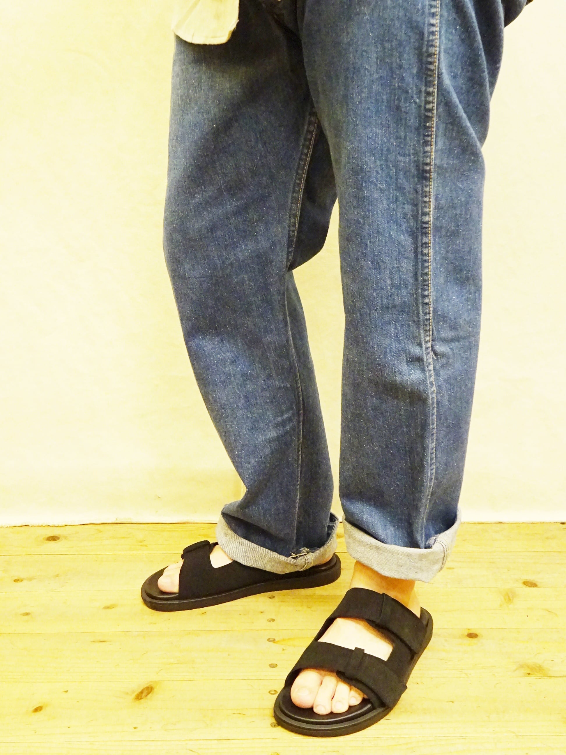 天然ゴムを使用したフラットなアウトソールは長時間履いても疲れにくく、ストラップ部分もベルクロ仕様でしっかりと足元をホールドしてくれます。