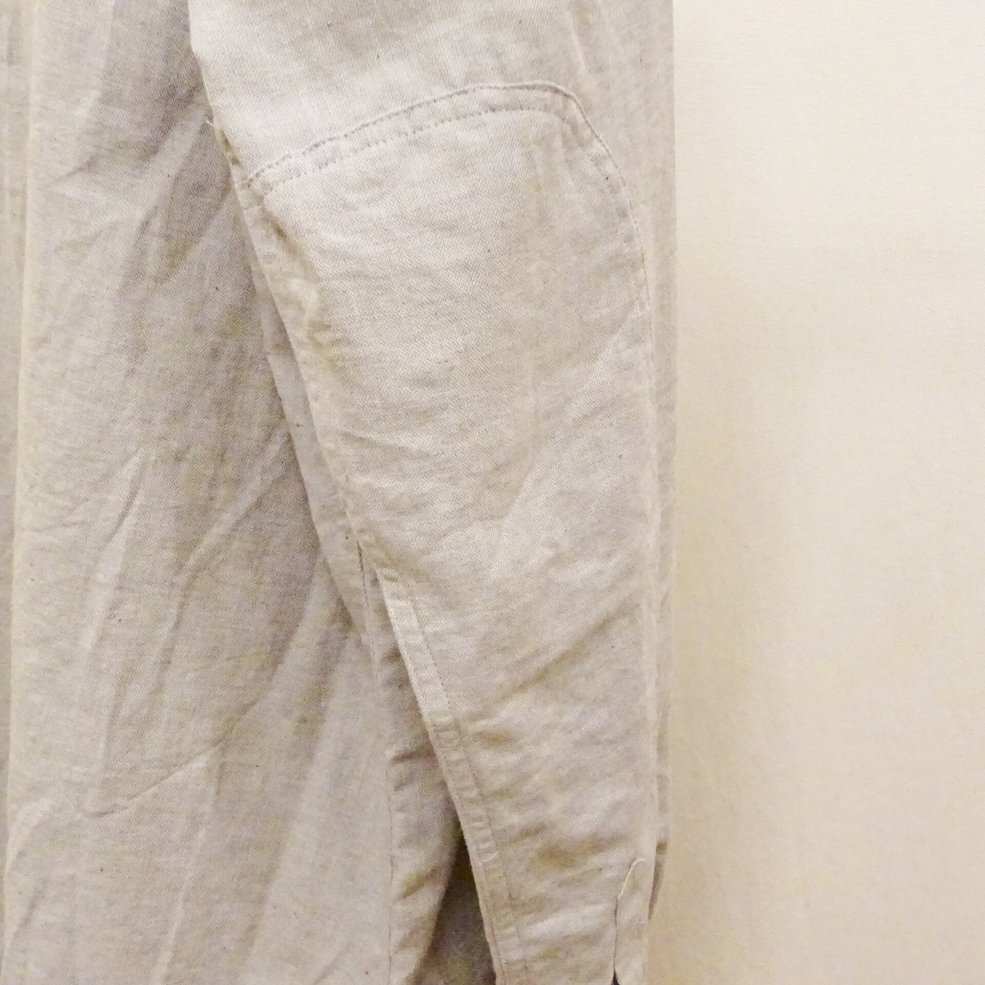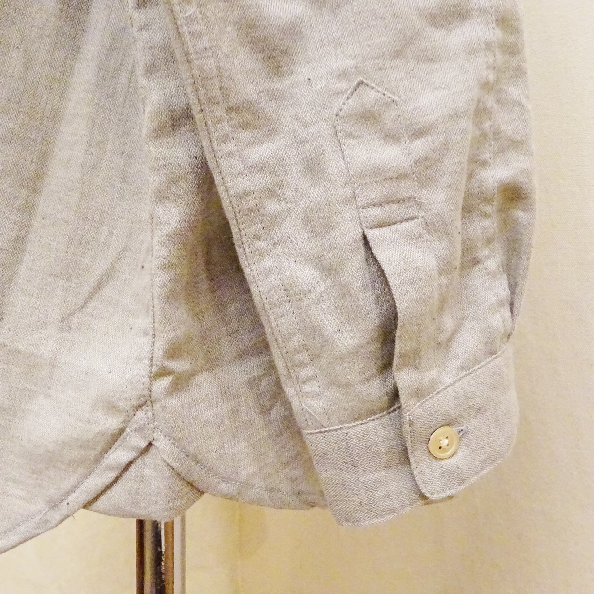 袖のエルボーパッチ、裾のマチなどワークシャツのディテールに、アームはやや細めの仕様で綺麗なラインのシルエットので、全体的に大きすぎず小さすぎないバランスのよいリラックスフィット。タックインスタイルにも対応しやすいです。