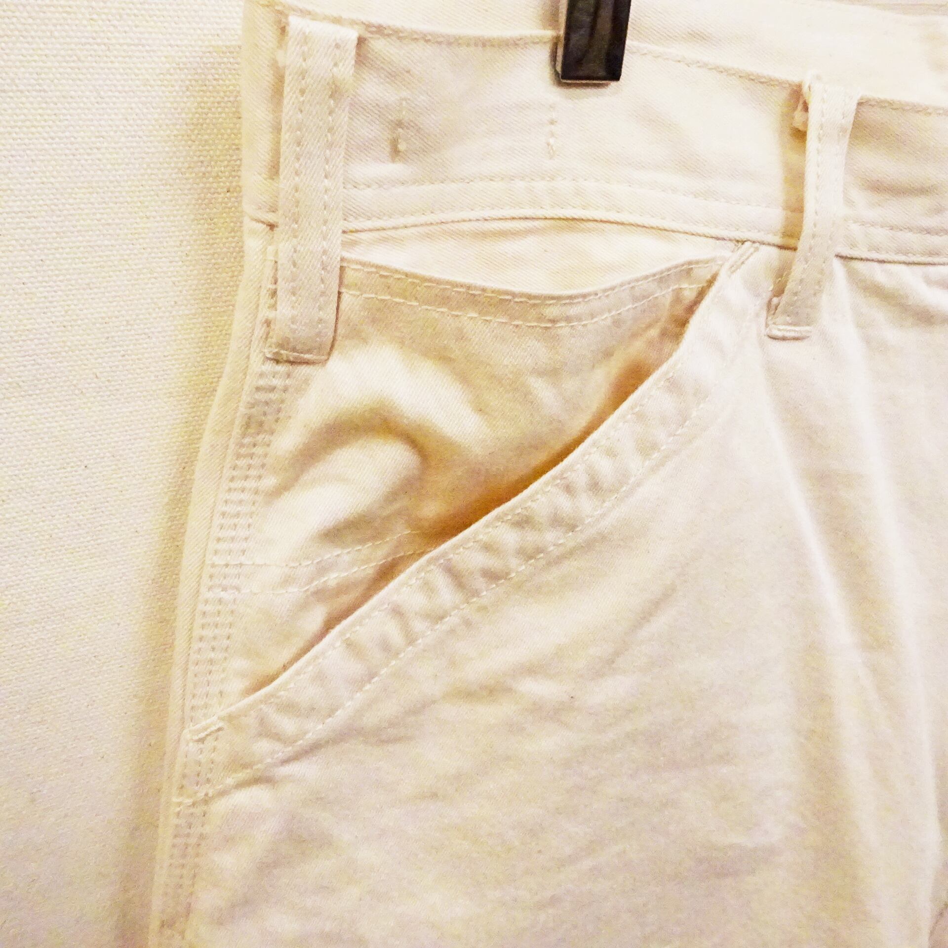 ハンマーループ、ツールポケット、トリプルステッチ等、ディテールはワークながら見た目以上にフワッと軽い風合いが良い感じです。