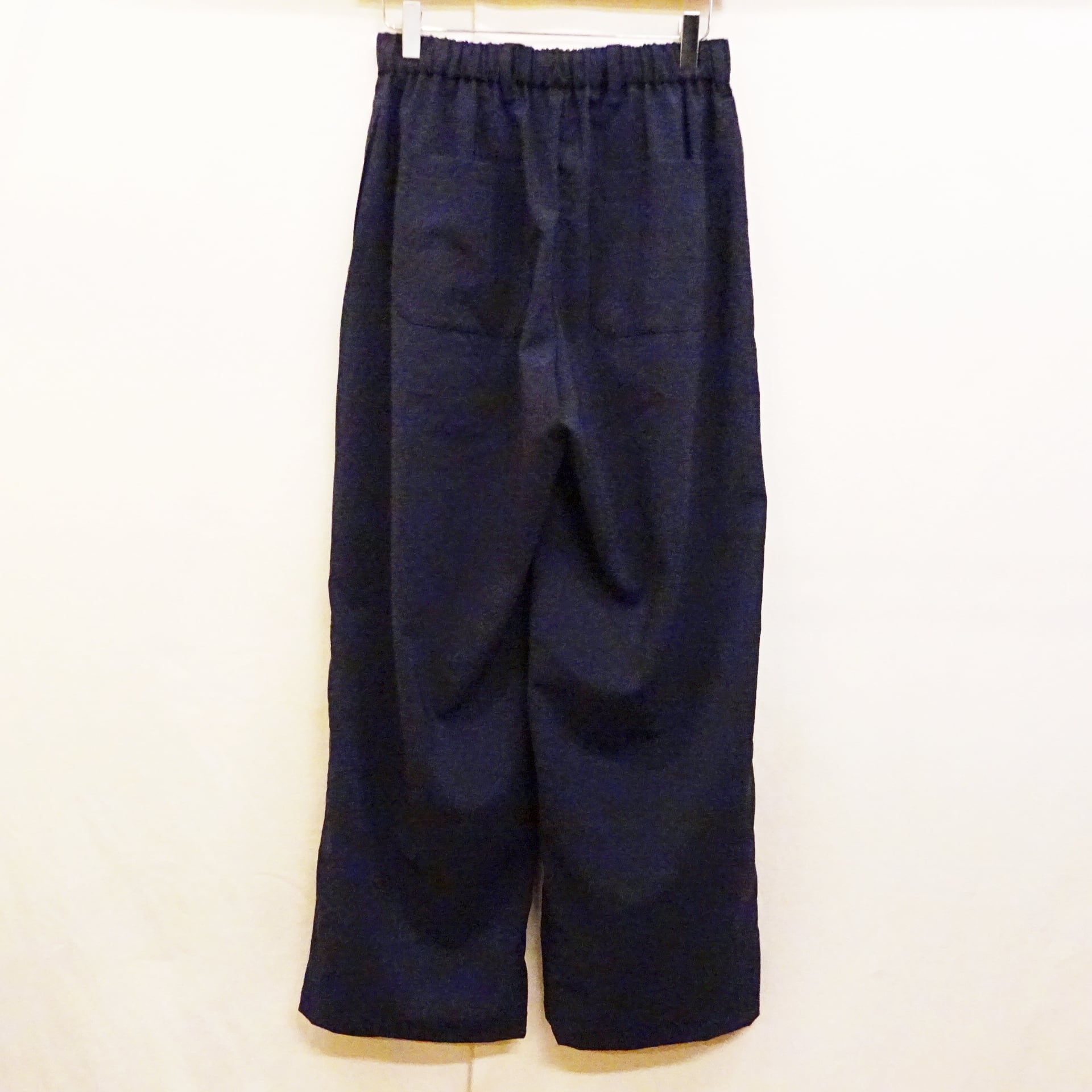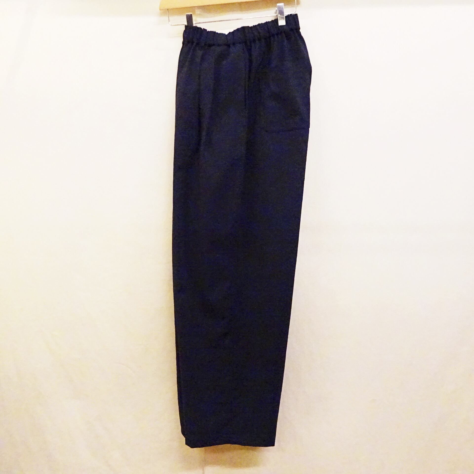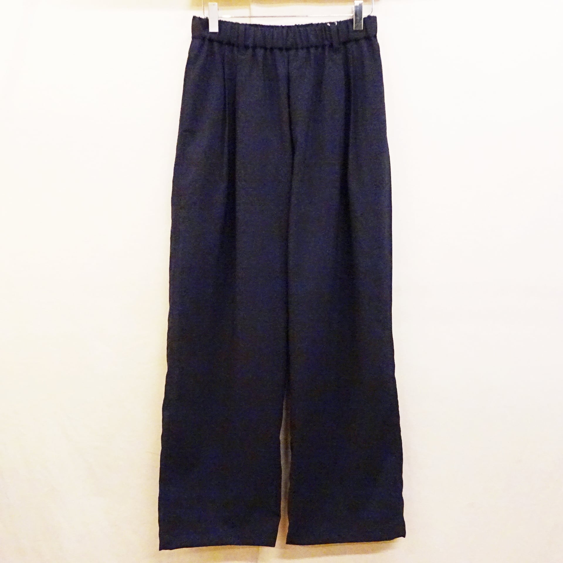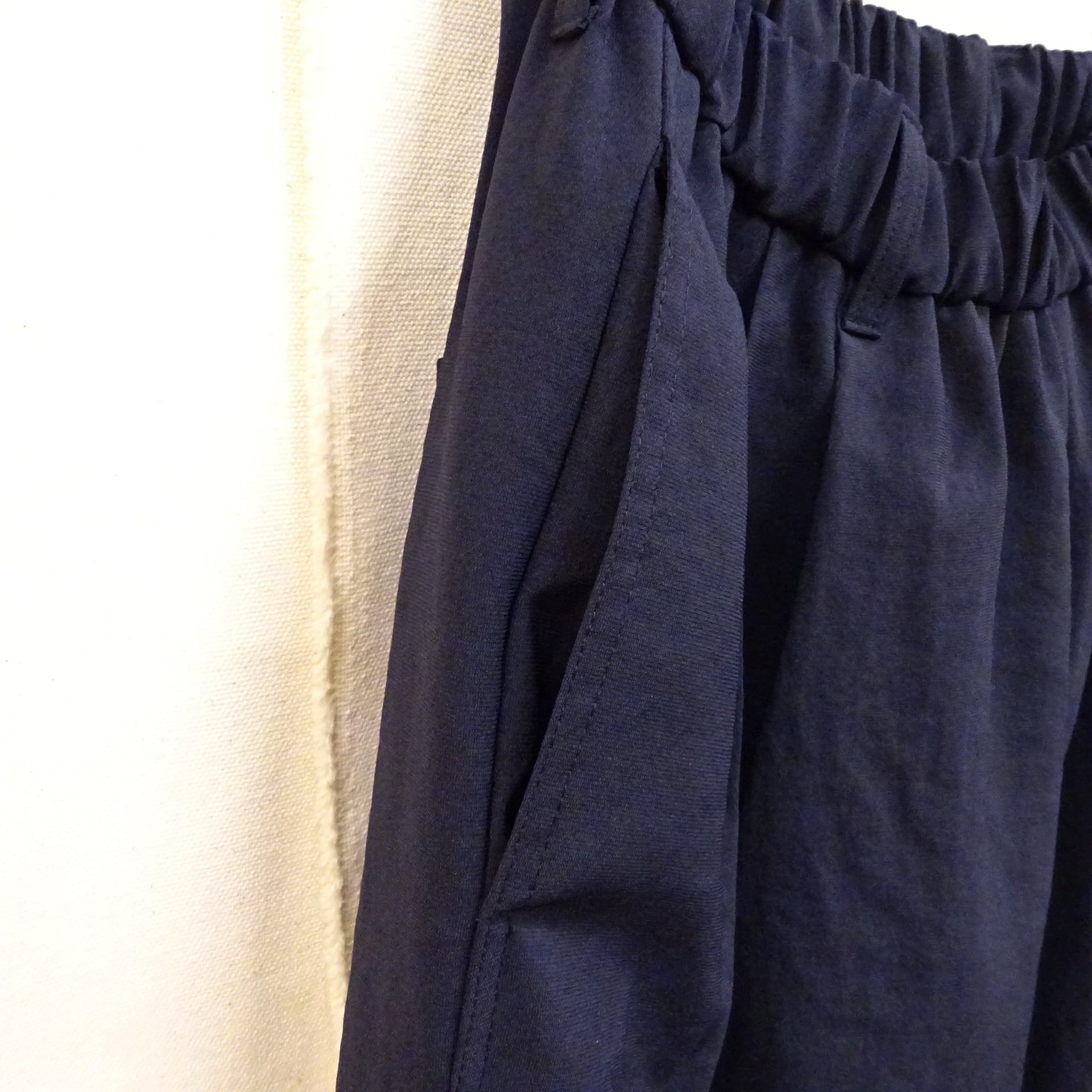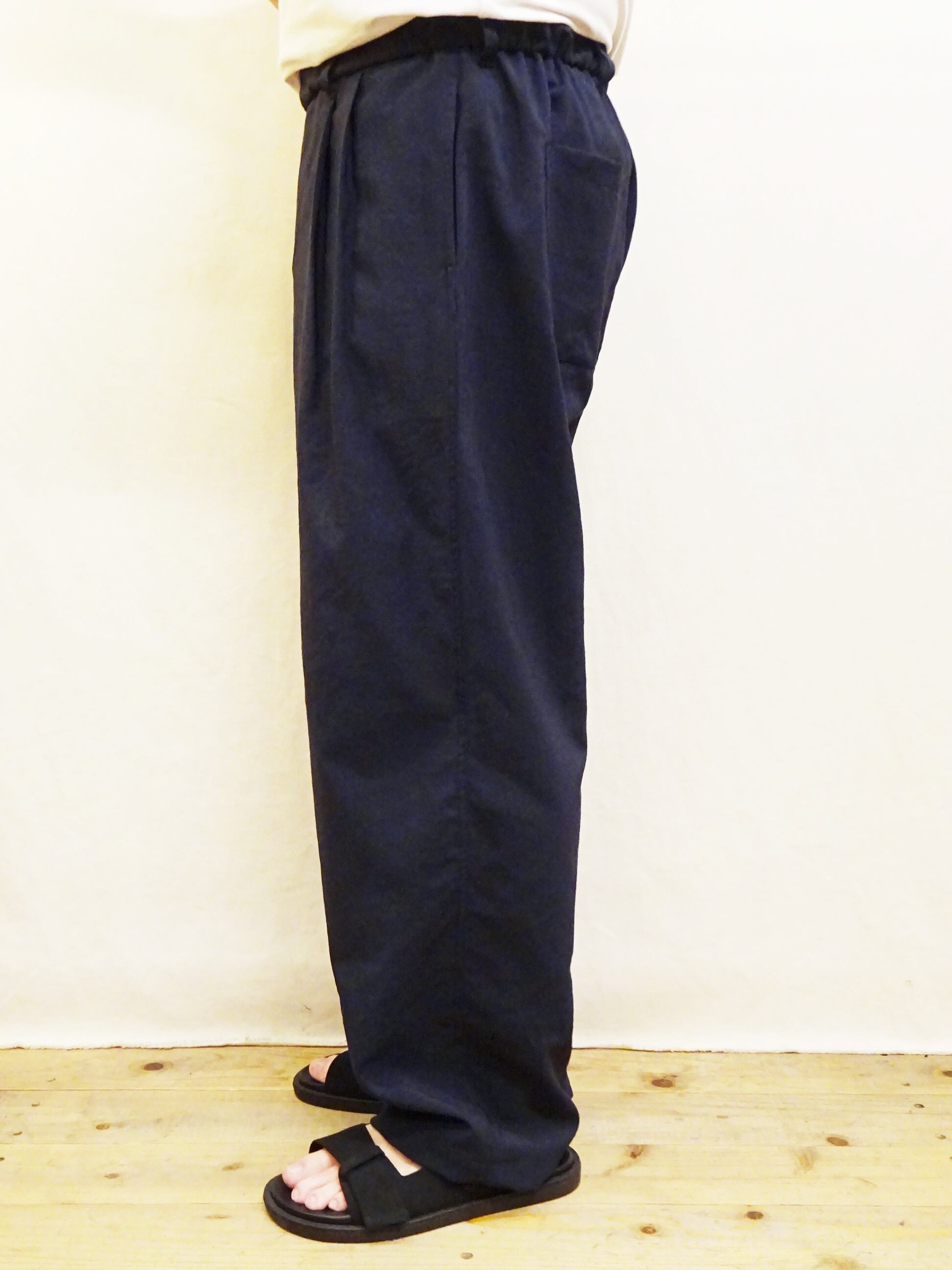 エステル素材ながらリネンのような風合いなルーズフィットトラウザー。軽くて涼しげな質感とドライタッチな風合いで、夏でも快適に着用できるカジュアルトラウザーのご紹介です。