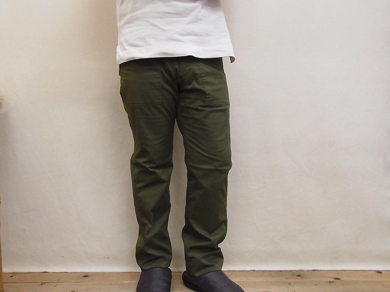 同ブランドの定番アイテムであるUS ARMY FATUGUE PANTSをデザインベースにしたFATIGUEシリーズ。高密度に織られたベンタイルギアを使用しており、ハリコシがありながらも、通気性の良いファブリックはオールシーズン快適に履いて頂ける1本。カラーはマットなオリーブカラー。落ち着いた雰囲気でカジュアルから綺麗めなスタイリングを楽しんで頂けます。