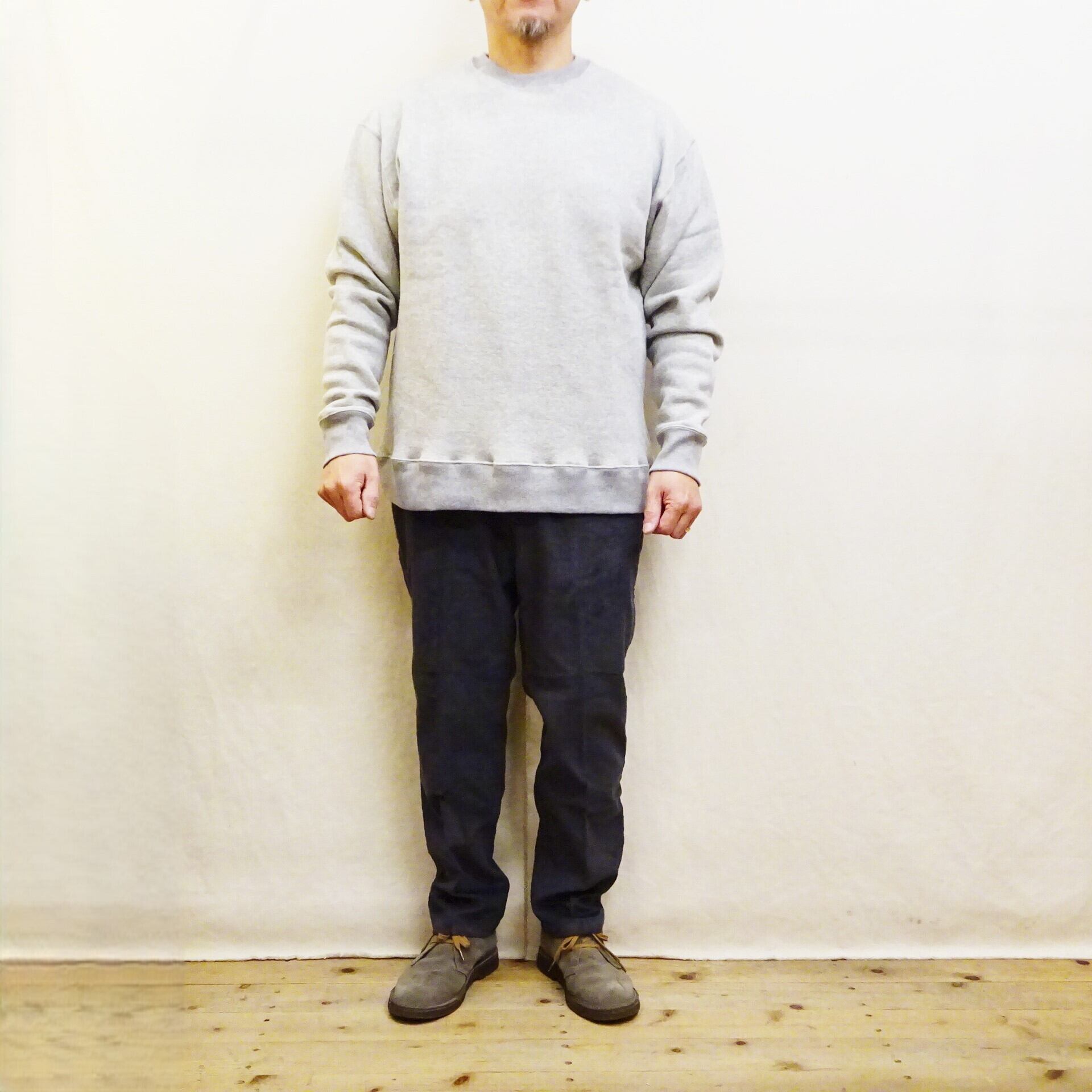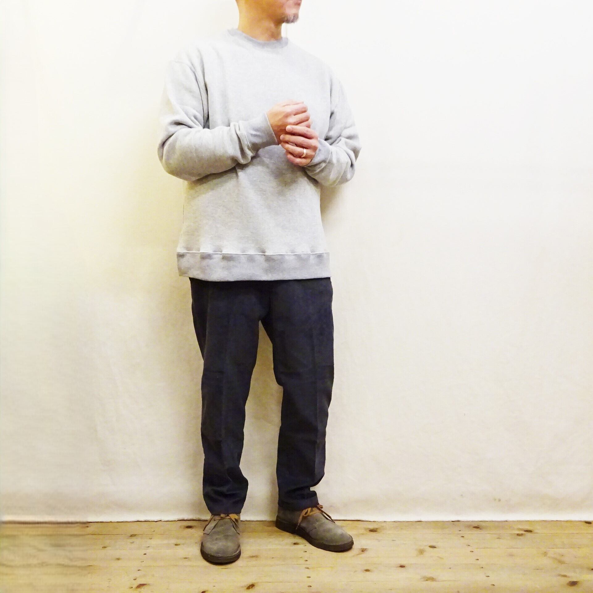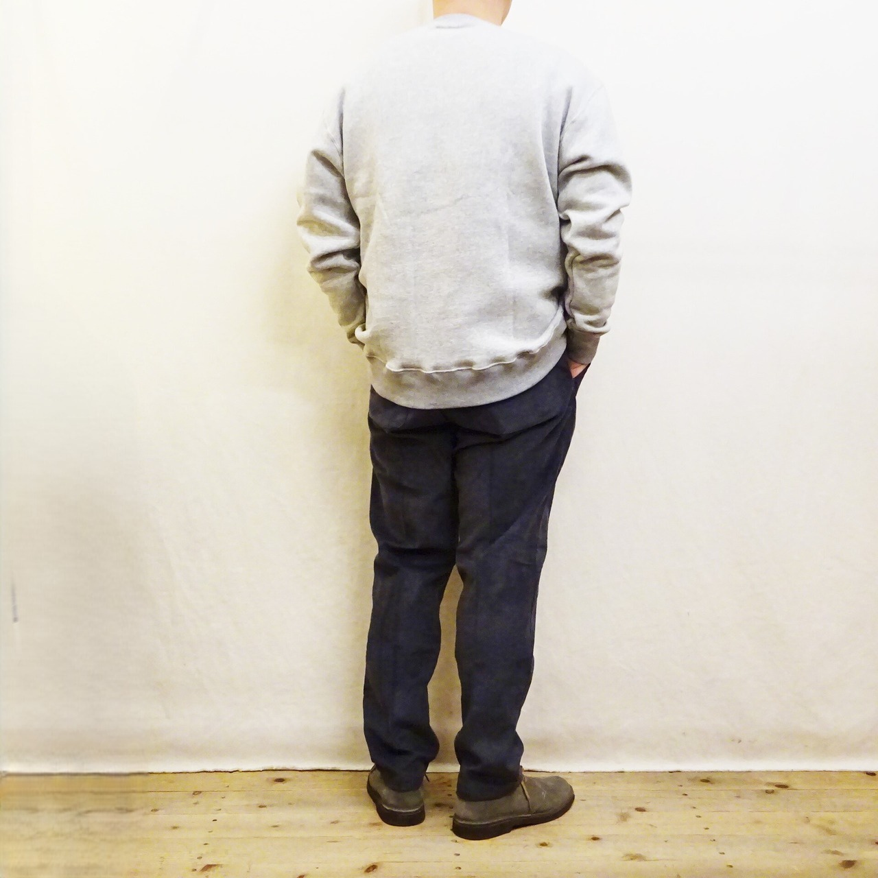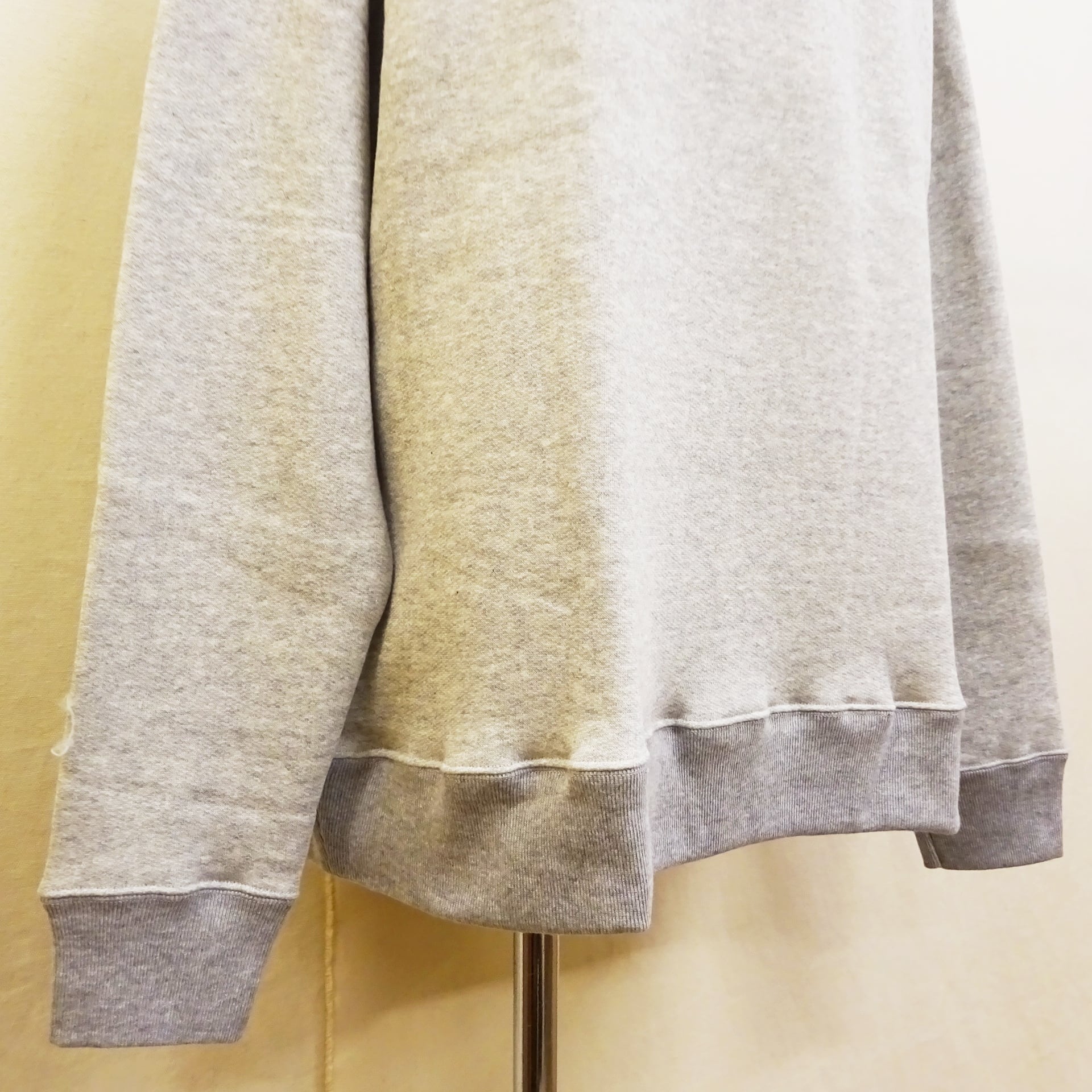 程よい粗いゲージに糸を多く入れ、適度な高密度に編まれた裏起毛スウェット。防縮ウールで生地自体にふくらみを持たせ、抜群の肌触りと着用時の着心地を兼ね備えた拘りの素材使用したスウェットです。