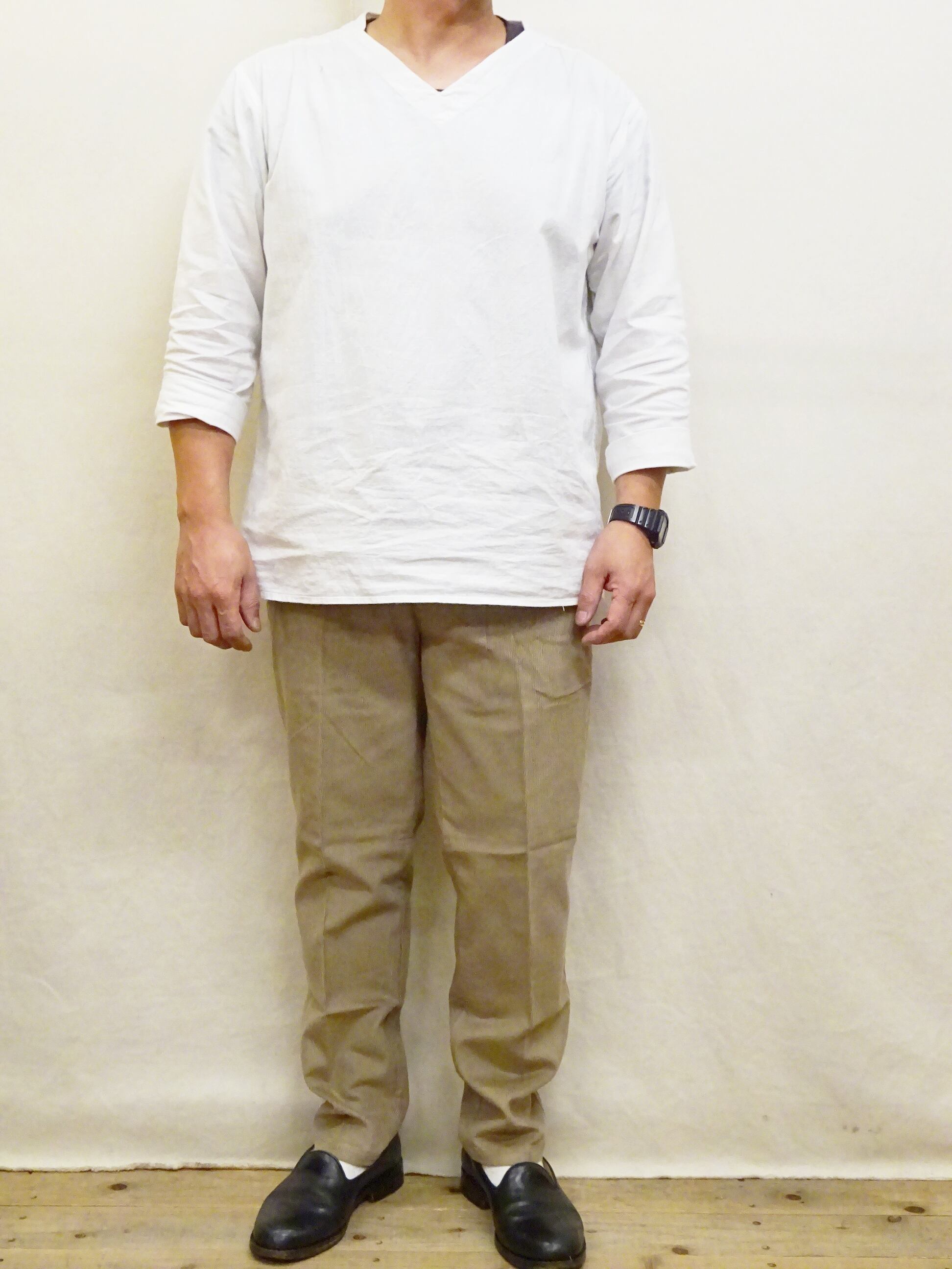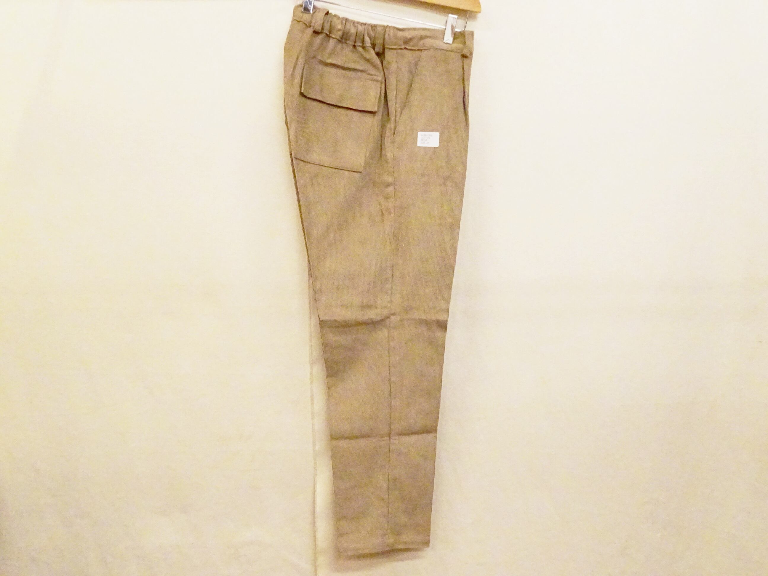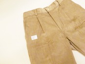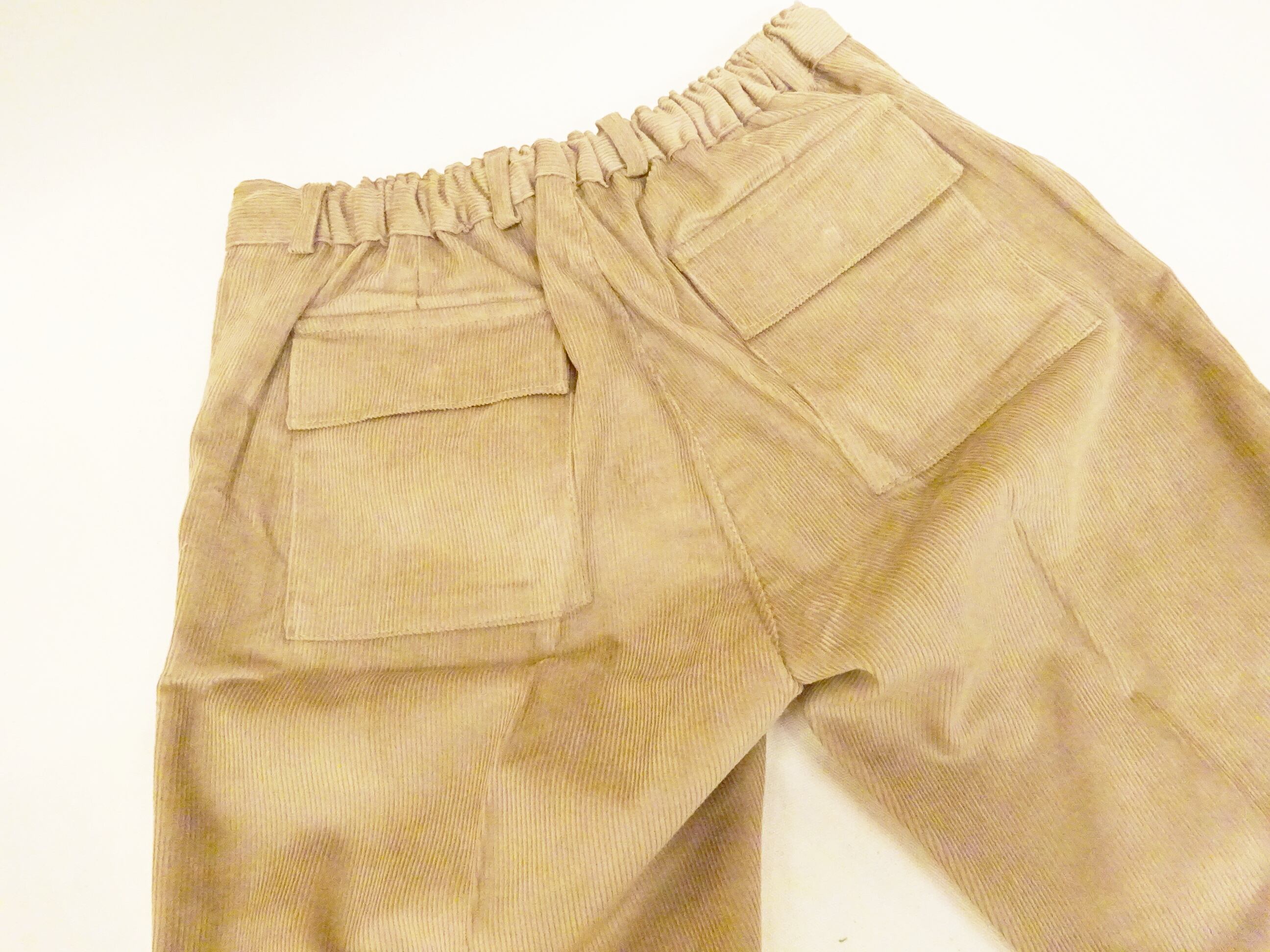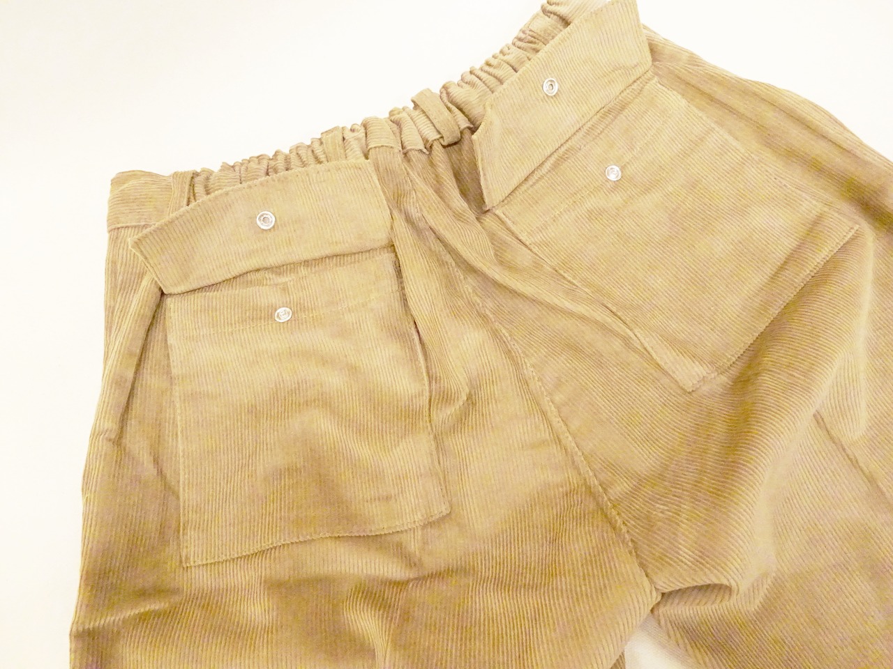 フロントのタックや程良いテーパードでリラックス感のあるシルエットに、ウエスト後部のゴム入り、ウエストの紐付などついつい穿いてしまう1本で、コーデュロイ特有の生地の光沢が品良く、従来の武骨なワークパンツとは違う雰囲気を味わって頂けます。素材やシルエットのバランスが非常に良く、シンプルながらとても綺麗なシルエットが一押しの1本です!