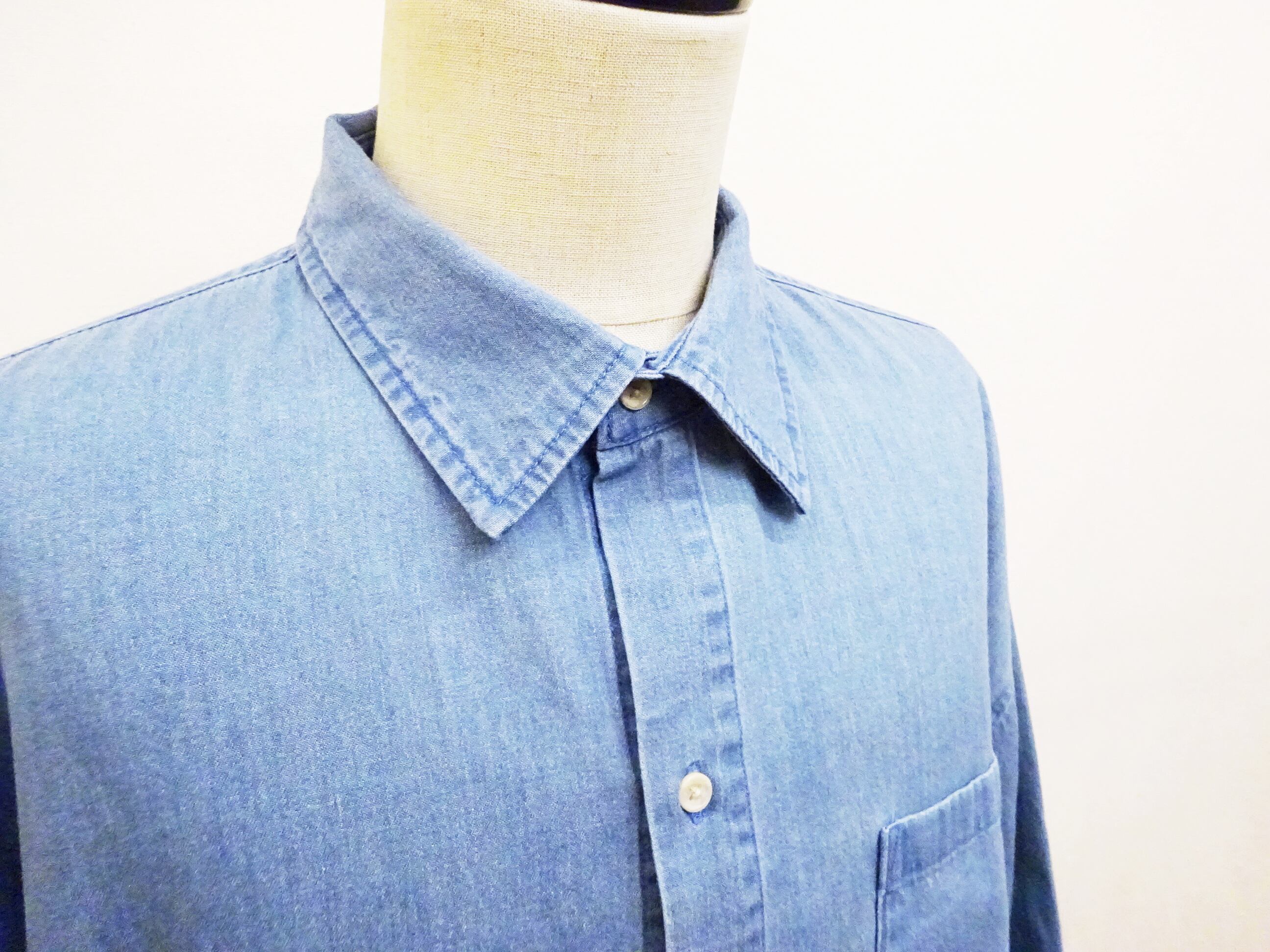 1980年代頃のアメリカカジュアルシャツをイメージしたデニムシャツ。ライトオンスのデニムを使用し、少しルーズに肩を落として着て頂くシルエットは、ストレスなく通年を通して着やすいシャツになります。生産工程の中で、特殊な加工を施し一枚一枚雰囲気が異なっているのもこちらのシャツの魅力になります。