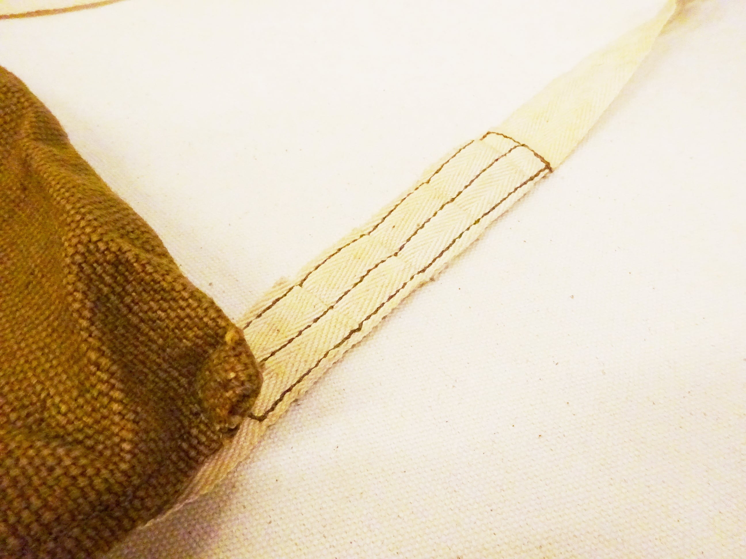 *未使用品の商品ですが、ステンシルの滲み、ストラップの保管時の汚れなどがございます。