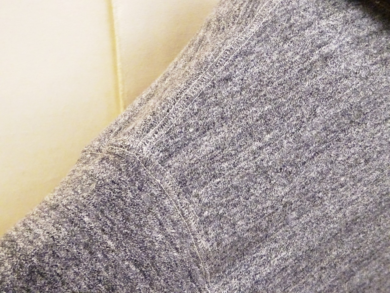 そして吊り編みのスウェットは両脇に縫い代のない、丸胴というボディ。体を包み込むようなリラックス感があり、柔らかな生地感と相まって最高の着心地のよさを味わえます。縫い目がごろつかない昔ながらのフラットシーマによる縫製も快適な着心地を生むポイントです。